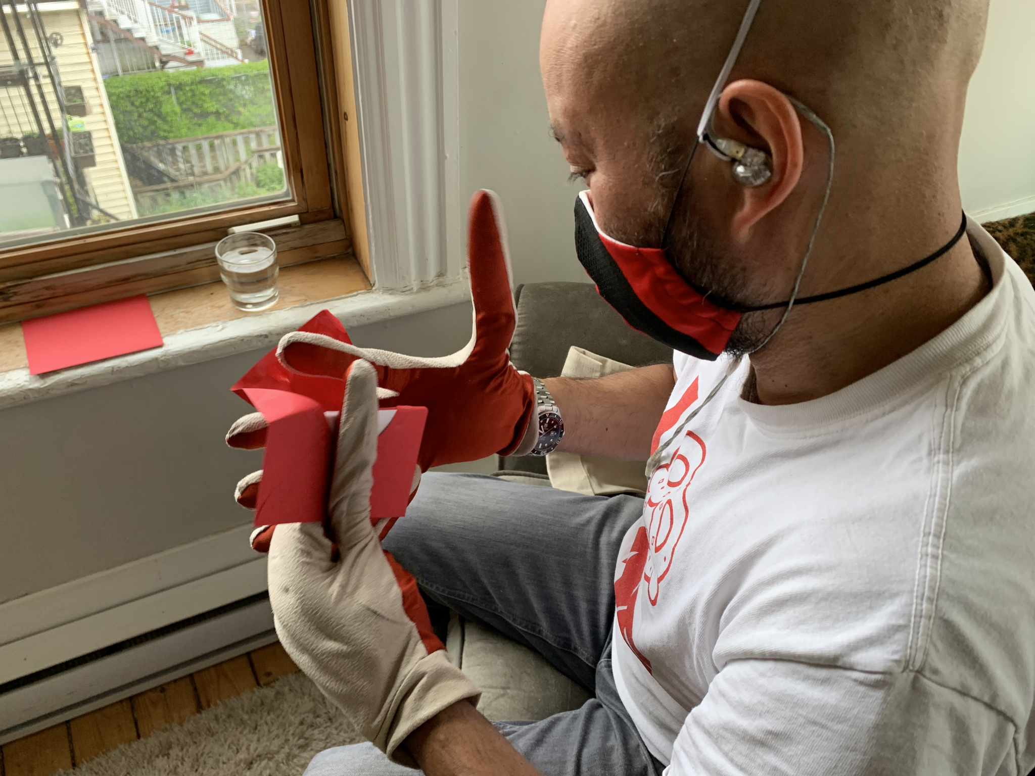 'I asked my guest to close one eye' consists of an audio recording that the participant may download and listen to with earphones. The participant will receive a small bag, containing items that may be opened through the prompts of the voice on the audio recording.