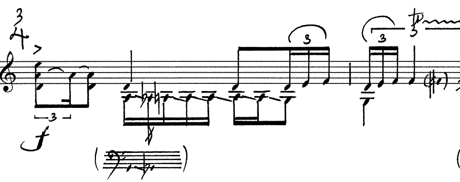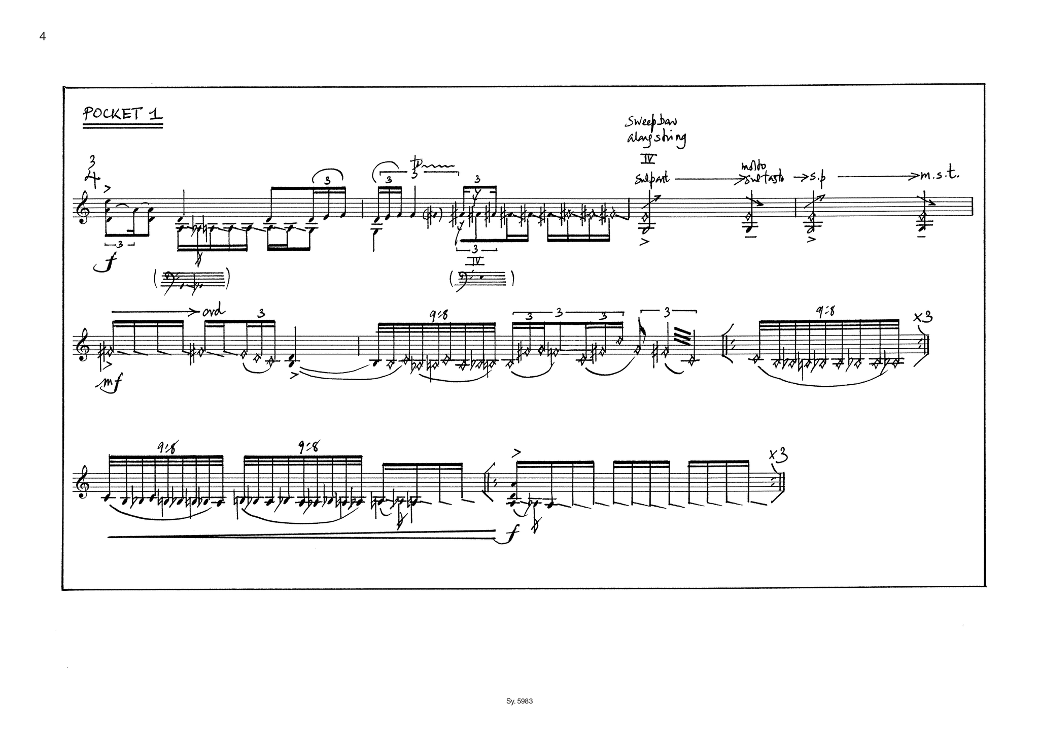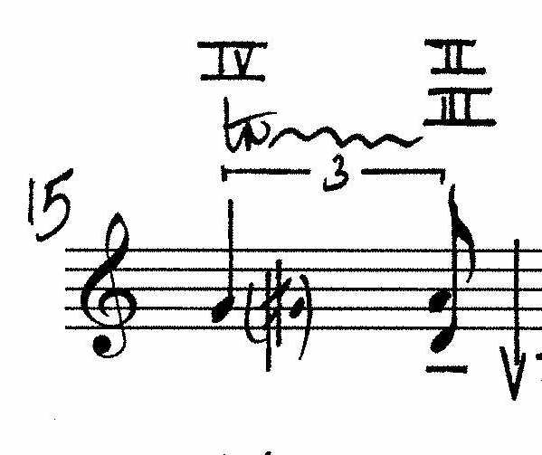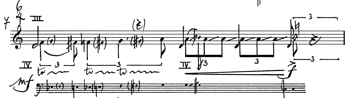 4: ‘ghost version’ of 1 fragment of bar 3 played with half-pressed notes and harmonics.