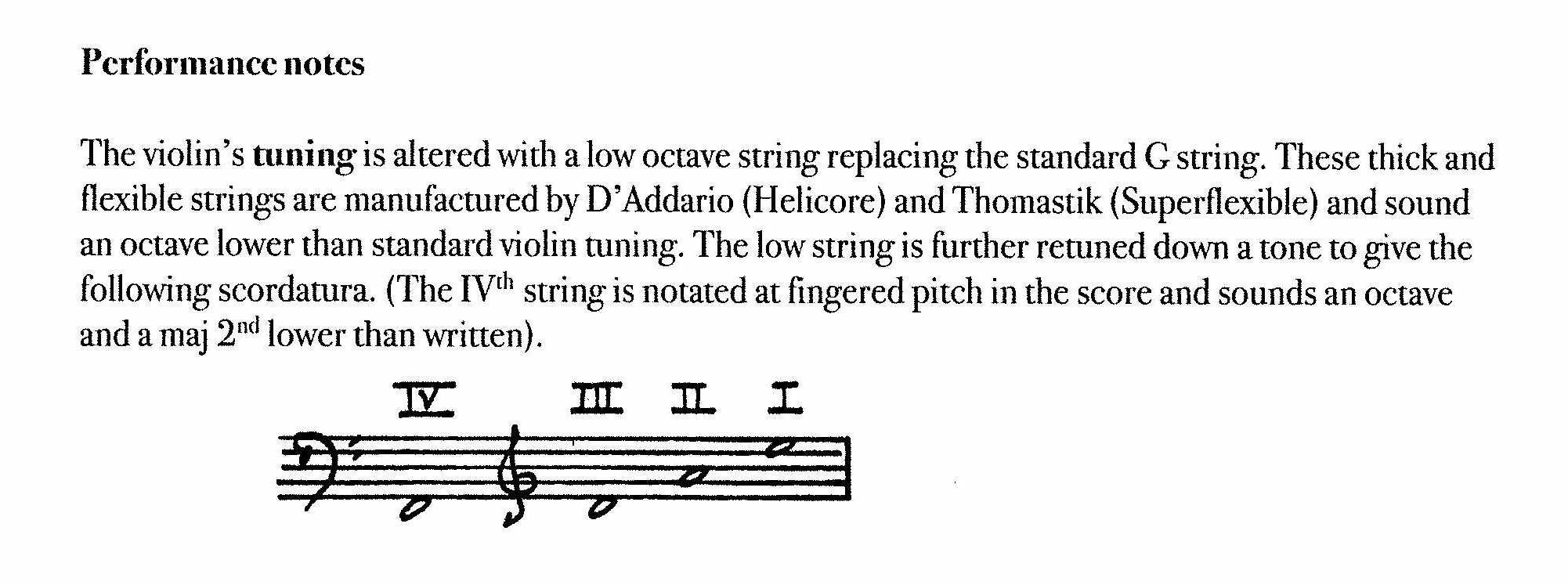 During 2021, before the work on Speculative Polskas starts, I explore octave strings on my violin. An octave string allows the instrument to sound an octave (or more) below its standard tuning. During one of our early Zoom meetings in September 2021, I mention the possibility of including this tuning to Liza, and she is interested to hear what the octave-stringed violin sounds like. I suggest using the fourth string with an octave string while the upper three are stringed in the conventional way. Liza asks me to try and record two different tunings of the low string. Combined with the regular D-A-E-tuned strings, we both find the octave scordatura of an F in the first octave to have a very unique voice (Figure 7). This expands the pitch range of the violin with more than an octave from its standard tuning. The octave string, being considerably thicker and less tense than the standard G-string of the violin, also carries different sonic characteristics. Its sound is less brilliant, yet well suited for the lateral bow strokes, which the second movement in particular will come to explore, where the bow moves along the string between bridge and fingerboard. Thus, before our first meeting in October 2021, we have already found one of the main characteristics of the piece. The octave string turns out to be so influential on our work that Liza later decides to use it in the string quartet she is composing right after, String Creatures (2022).