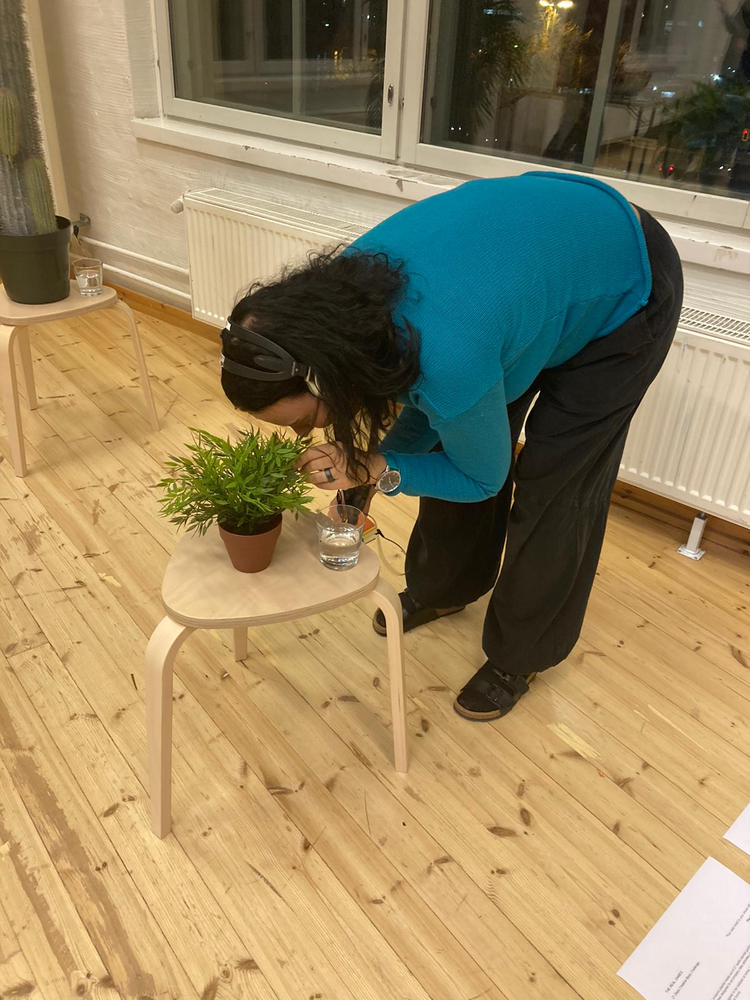 Copy the shape of the plant. You are the plant. Make yourself a selfie as the plant. Without leaving the form of the plant answer for yourself the following questions. What’s your plant name? Where are you? For how long have you been there? Who put you there? Why? How are you? If you could change your position to which position would you arrive? Change the position in 3,2,1. In this new position a song comes to your mind. You sing it in playback. You sing it louder. Louder. Louder. As if nobody could hear you. Shure enough, nobody can hear you. Shure enough nobody can hear you, you are a plant. Now tell me, which is your deepest desire? Respond to yourself. Begin your answer with the words “I want to”.There are other plants in other apartments in other places. Make a telepathic contact with one of them. Send this plant a message with a wish for her. Return to your human shape. Take a glass of water. Drink a sip of water. Water the plant. When you have watered the plant, the game ends.