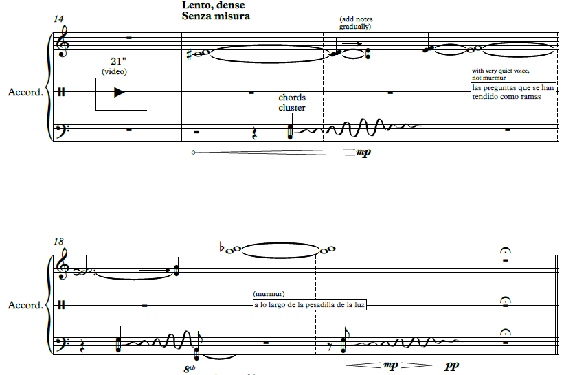 Francisco had never worked with accordionists before, though he had studied relevant repertoire. Therefore, his perception of the instrument was inevitably filtered through my experience and my bias. Since I only played for him what was important to me, the image he formed was co-shaped by my particular way of playing, my musical choices, and not least by the limits of my technical skills.