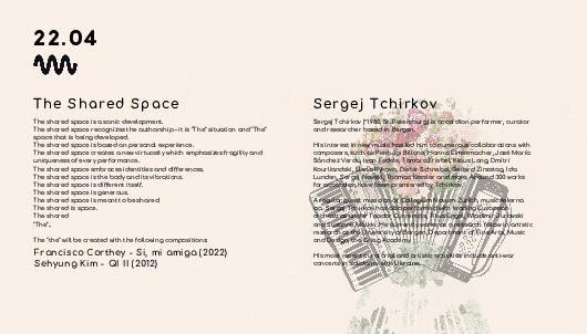 [1] A few months later, I performed two recitals at Kalvfestivalen in Sweden, titled The Shared Space I and The Shared Space II. The lines quoted above were complemented by the program notes written for The Shared Space II, which are available via the provided link.↩︎