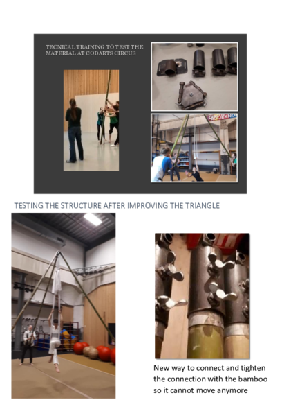 My research mentor brought me to the idea that the object was the main character in the play. I asked the audience and my performers about this, how they felt and I started to play myself with this idea. I gave it a role also by it self and now, in the end of the performance I first ask for an applause for the structure. I like the idea that we can bring an object to life, but also that the presence of this object influences us and the audience. But how big is this influence? It was created for a practical reason and now it has become more then an practical tool. Already a structure has meaning in it self and there for it can be valued.