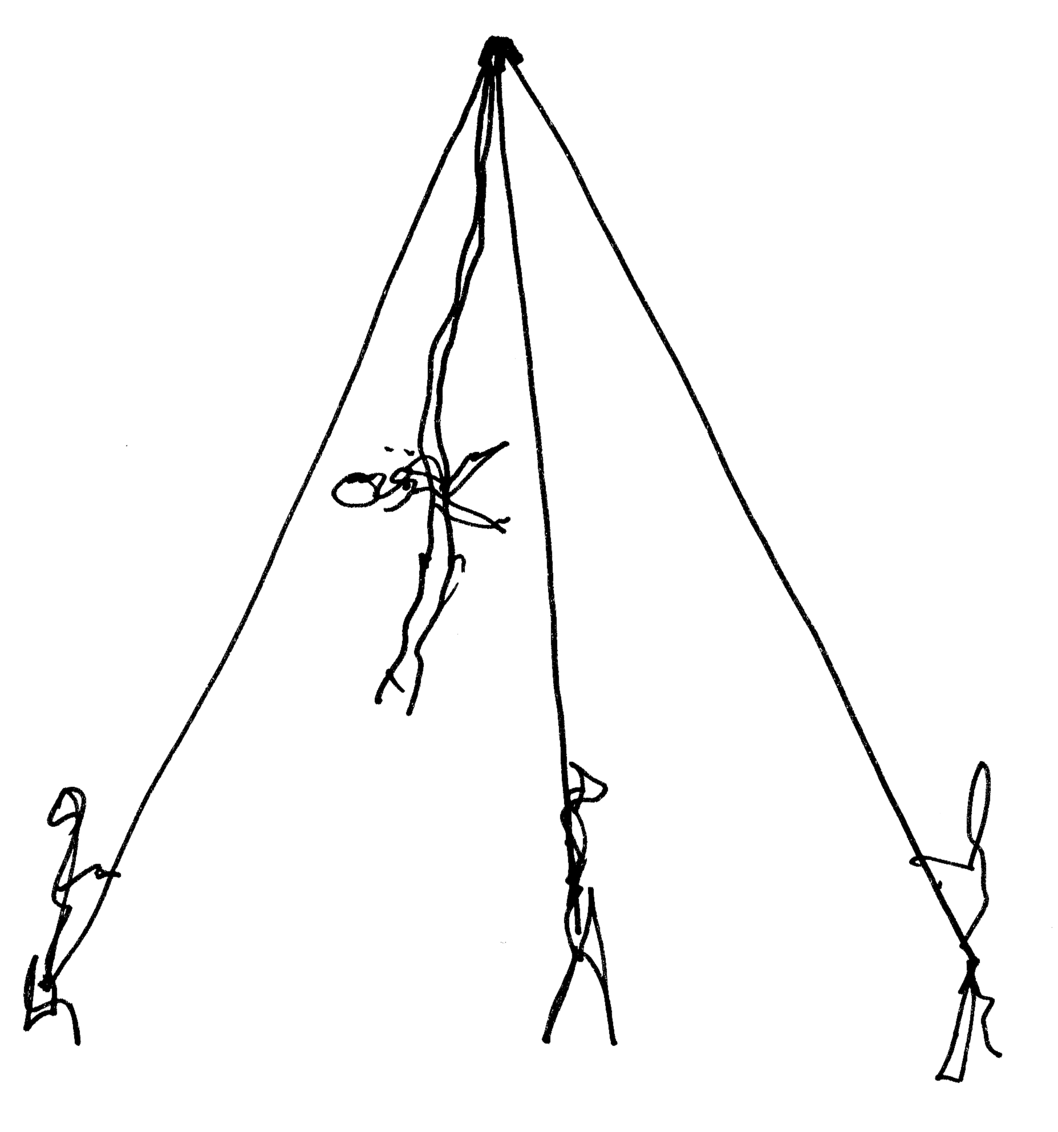 I call what I do performative research. I use the performance to find out what it is I do when I create while using the influence of audience, performers, the material and space in the creation it self. Results of the research until now is that we see: playfulness, care, the tri-pod as the main character in the play, shared experience, audience wanting to participate. This resonates with the definition that performative research is collective, it is merging objectivity and subjectivity, it is non teleological and there is a combination of disseminating and doing.