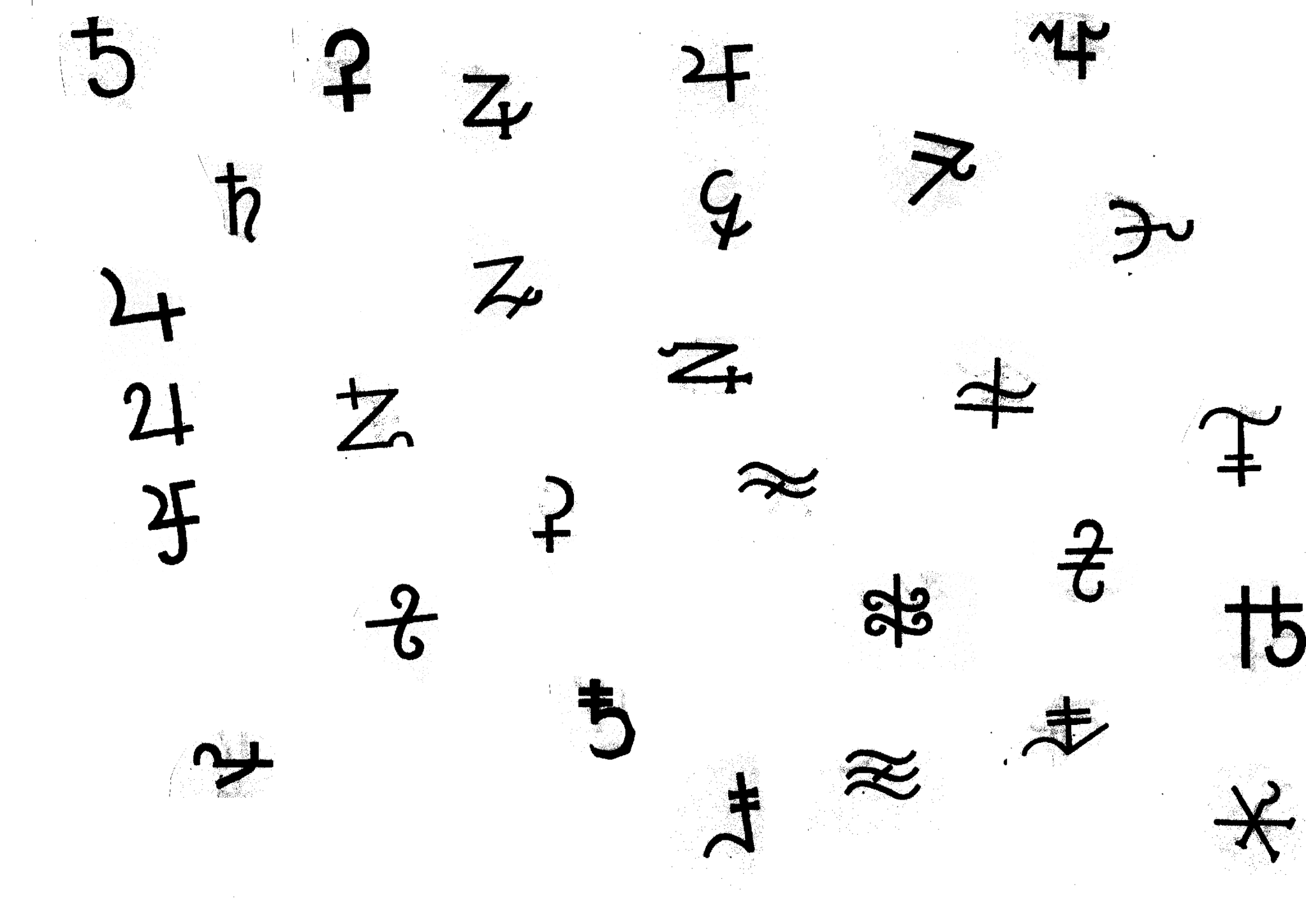 These last symbols are a collection found in the book “The dictionary of symbols, Norton and Company, 1995, pages 196-207”. In the book, this collection of symbols is described as “a-symmetric, soft and straight-lined, open signs with crossing lines”. What drew my attention is that, in my arbitrary sound translation, some of these symbols can be approached in relation to their polyphonic density and to how many “shapes” co-exist in one symbol.
