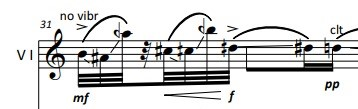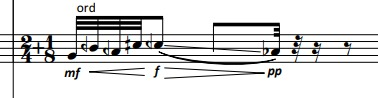 The composed “shadows” are always performed much softer than the main gestures, col legno tratto: