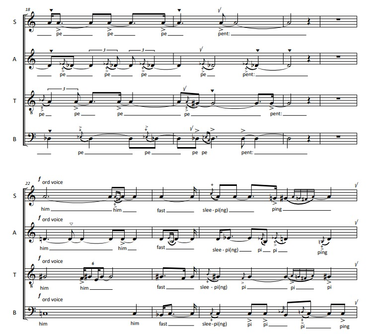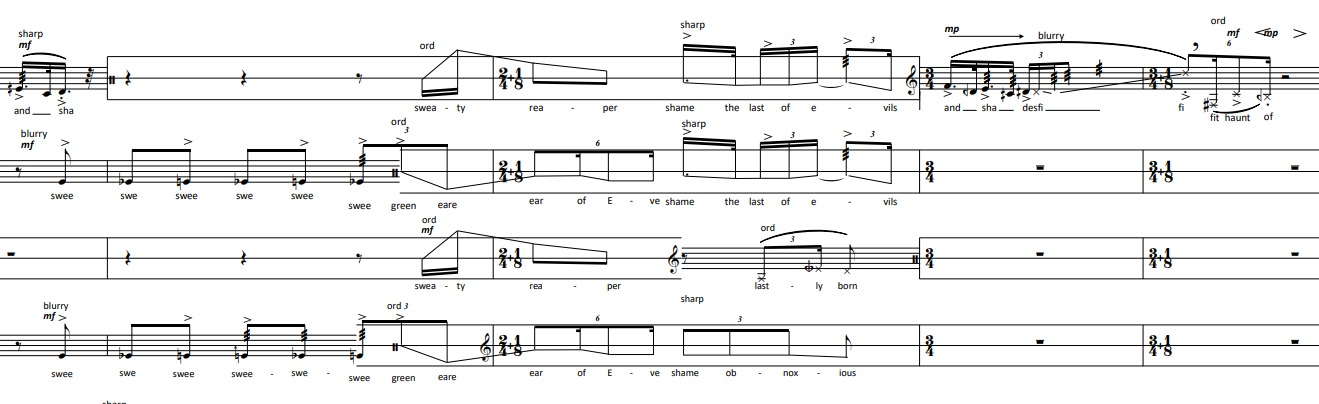 This process resulted in a vividly-ornamented SATB acapella piece. A further analysis on the symbolism of the serpent is made for the piece “Grey earth, serpent”, which follows.