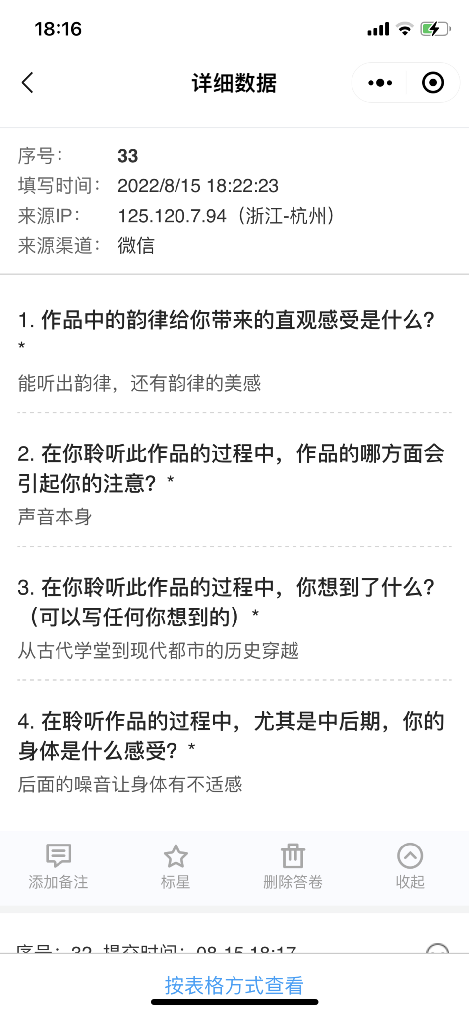 2. While you were listening to the work, which part got more of your attention? The sound itself.