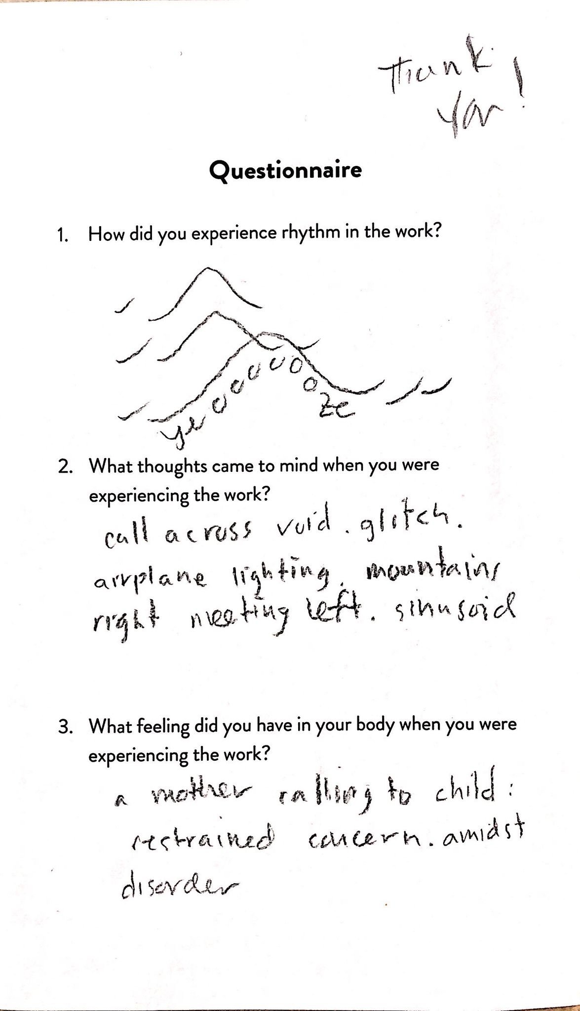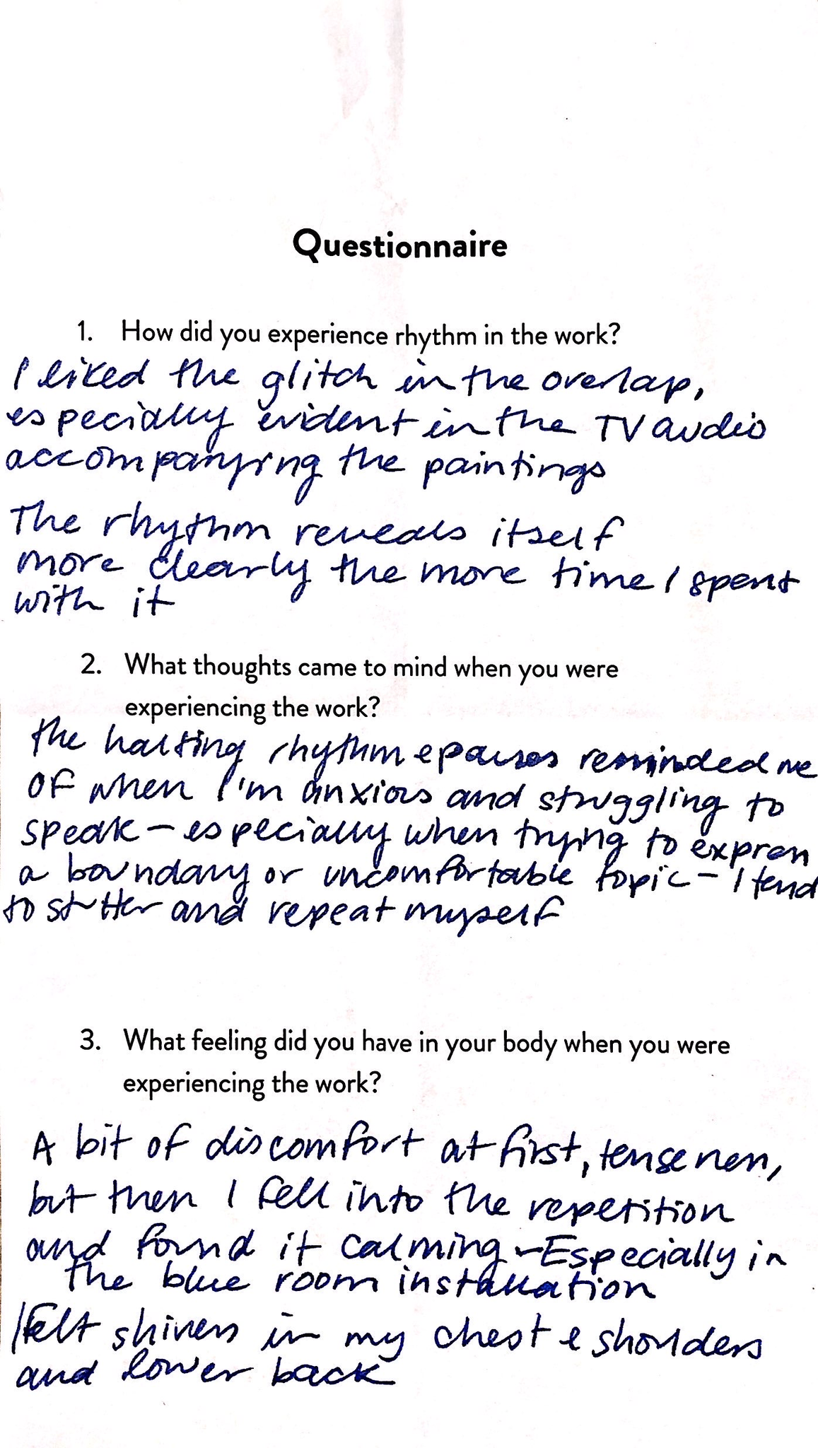 3. What thoughts came to mind when you were experiencing the work?
