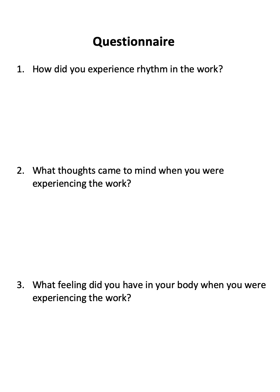 1. How did you experience rhythm in the work? I hear the rhythm and I can feel the beauty of it.