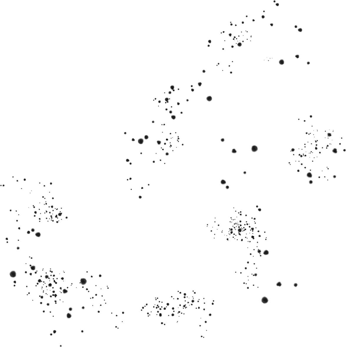 irregularly in space, at varying distances.