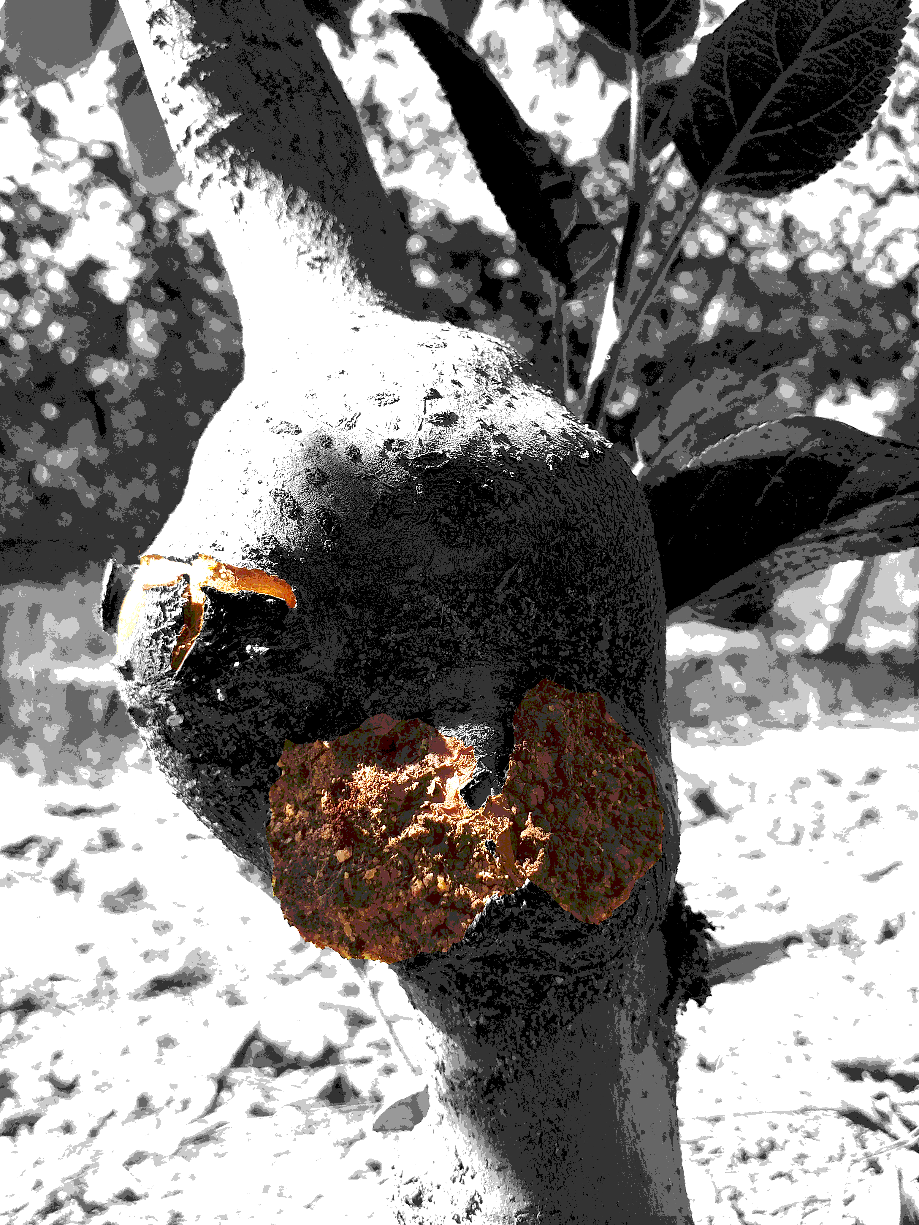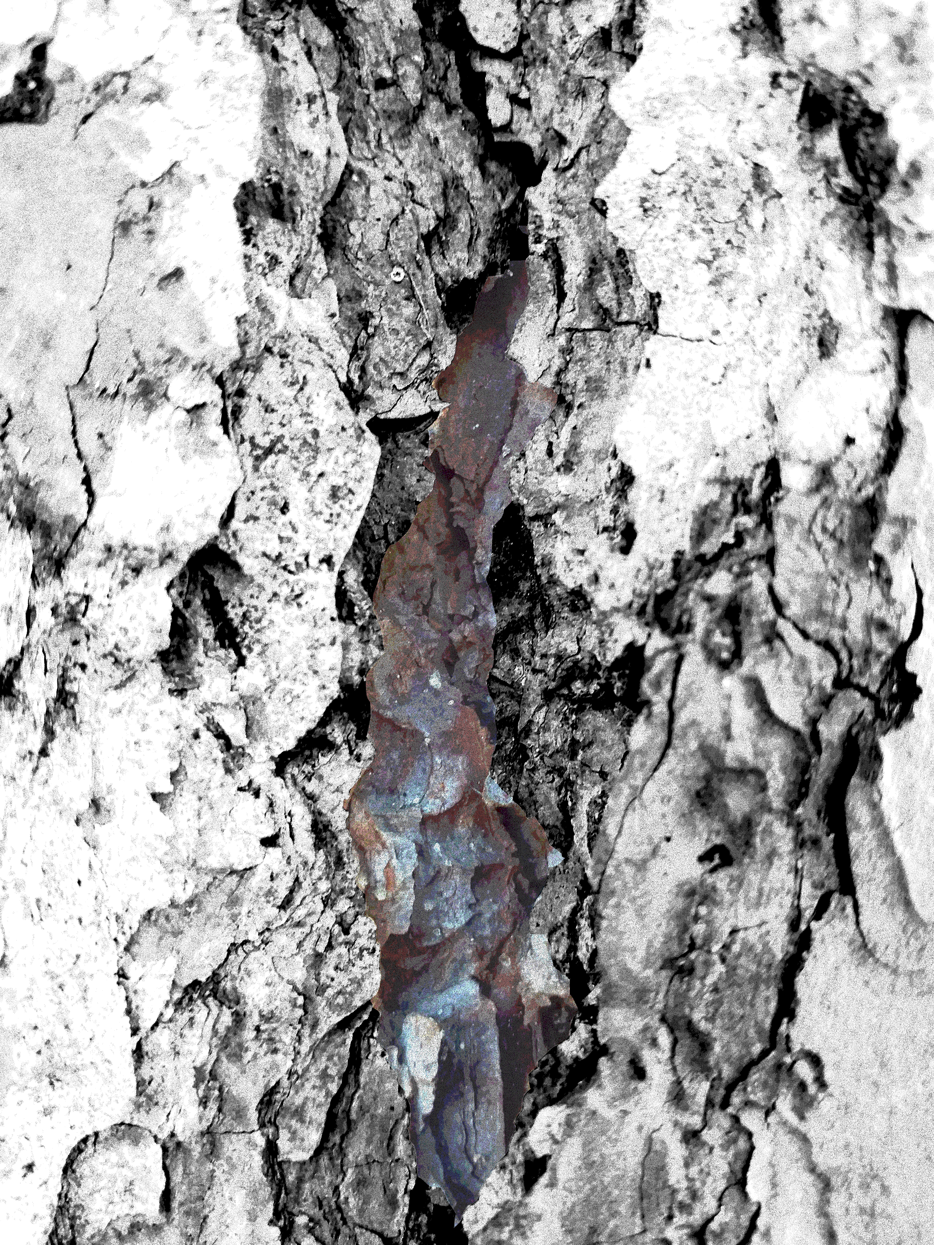 With cracks, patterns of moss, fungi and remains of plants blown