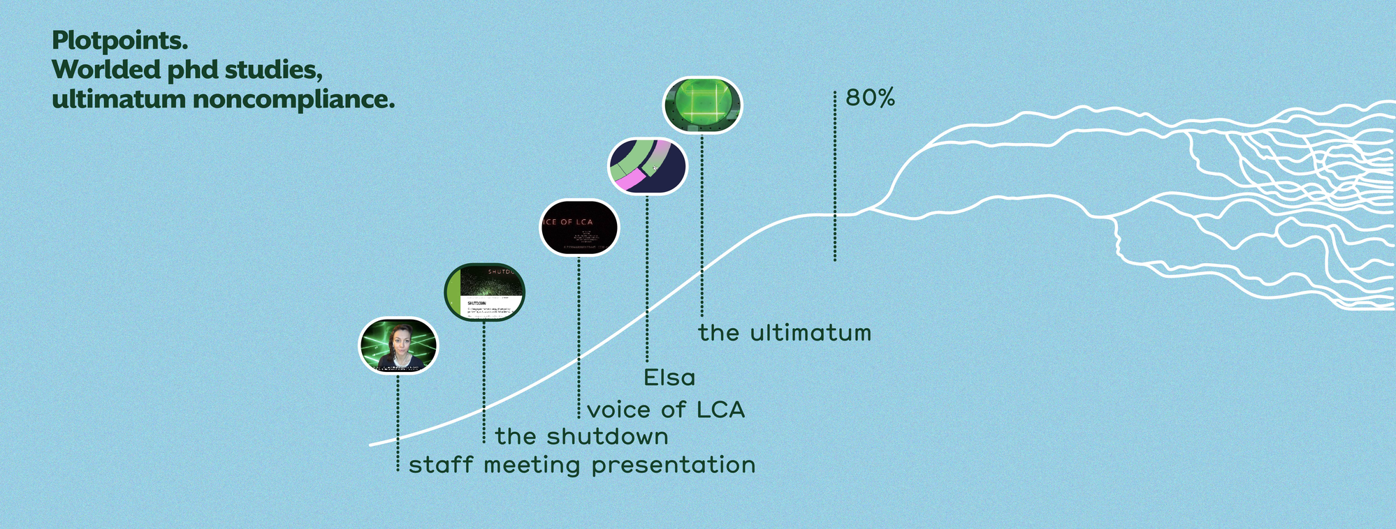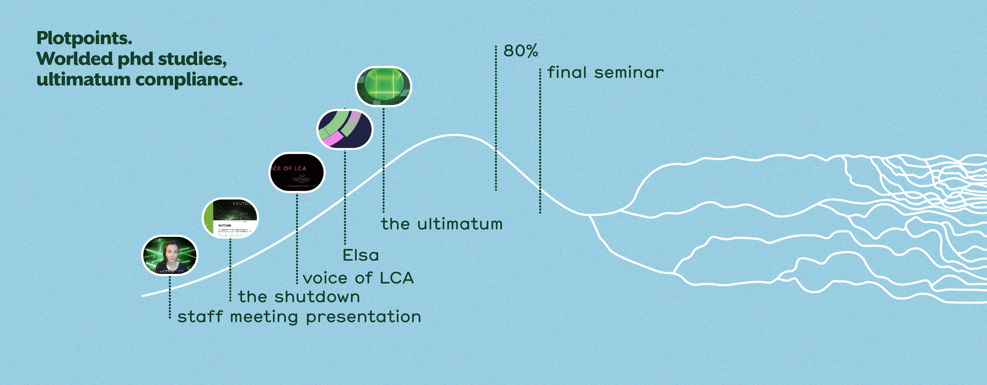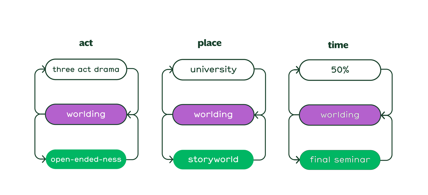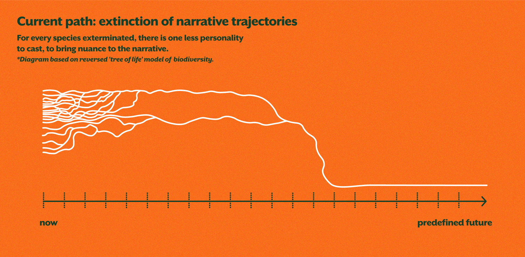 So can this dramaturgical ultimatum itself help to divert this narrative from the set manifestations of the future, help the story to stay with an open-ended-ness? Can conditioning the assumed endpoint, pave way for a more diverse array of narrative trajectories?