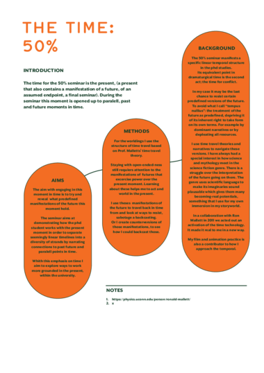 A few years ago things changed dramatically, setting off a series of events leading up to this moment. A time machine experiment shifted the basic conditions for life. The experiment caused a tunnel in the temporal dimension. It was a one-way tunnel from another side. A one-way tunnel from a future point in time. A point in time where a subaltern future resided. A future undermined, deprived by the present, of its right to form in diverse ways. The tunnel opened a way for this future to arrive as an emancipated force in the present.