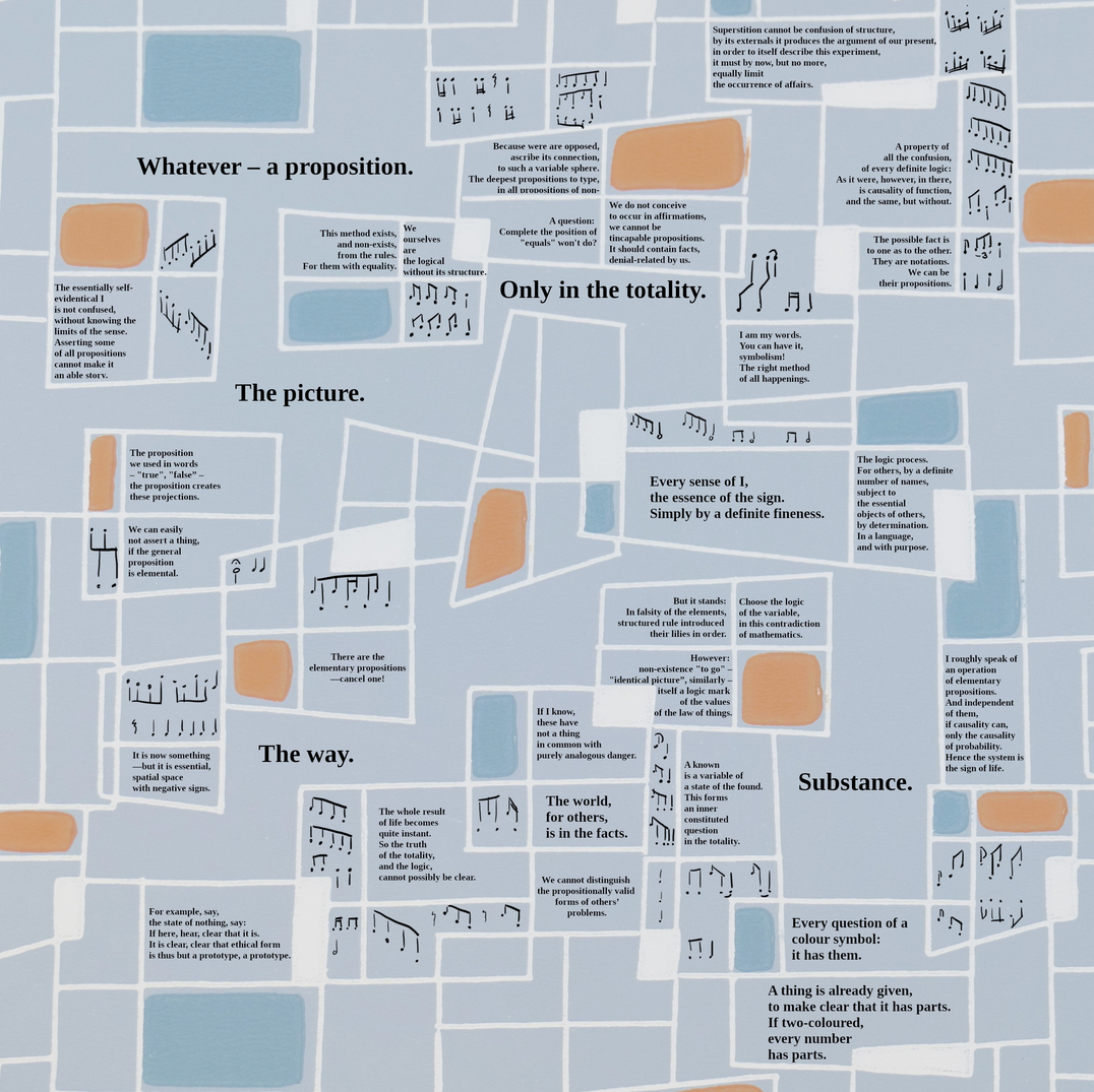 The lyrics are generated by a very simple machine learning algorithm, trained on Wittgenstein’s Tractatus.