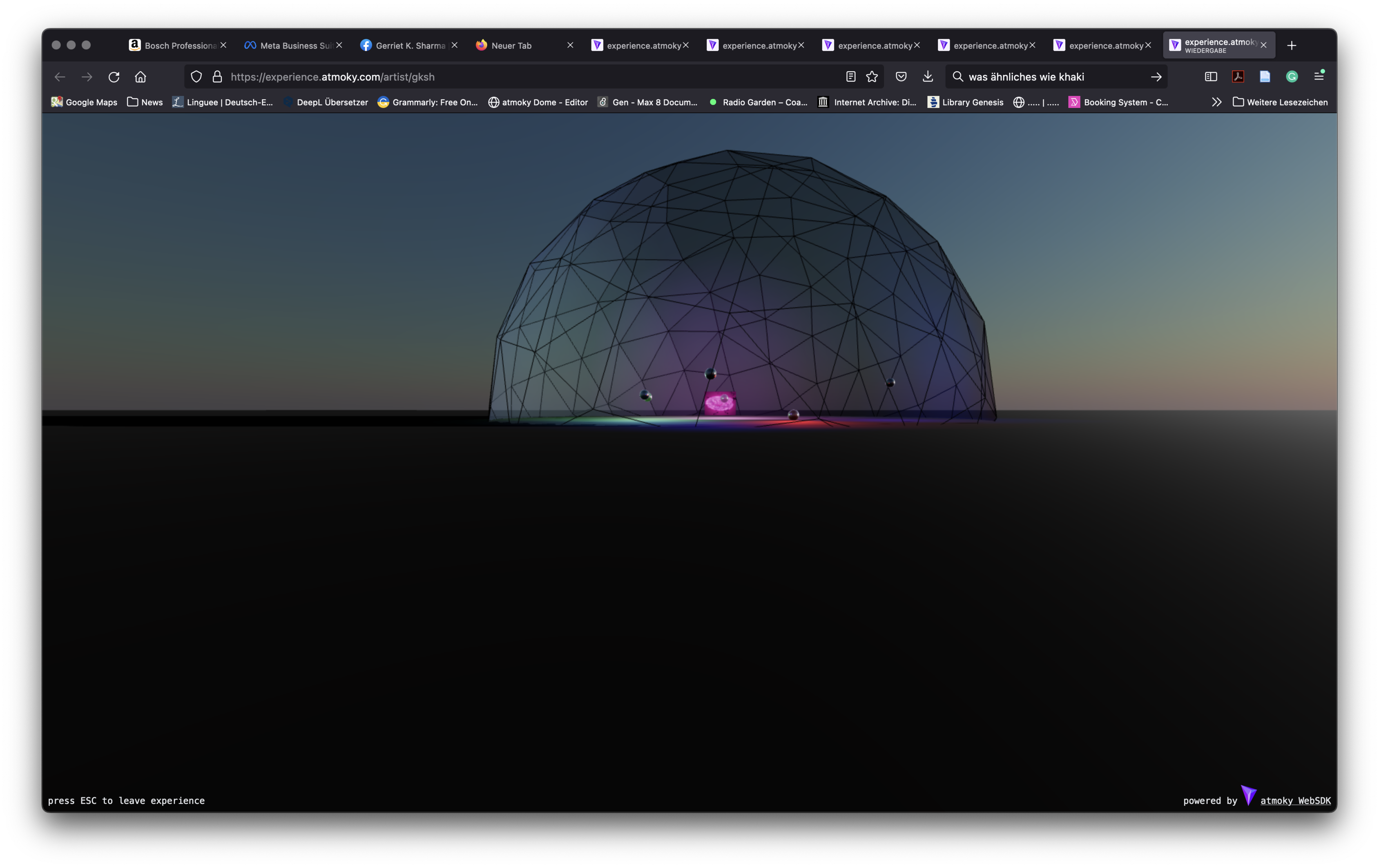 The company is creating algorithms for the spatialisation of sounds, especially in AR and VR environments. As a model, they published this virtual dome for the web browser in which one can place sound sources and navigate with the keyboard and ears binaurally. Gerriet K. Sharma was the first artist to test this setup, contributing to this promising environment with spatial sound compositions.