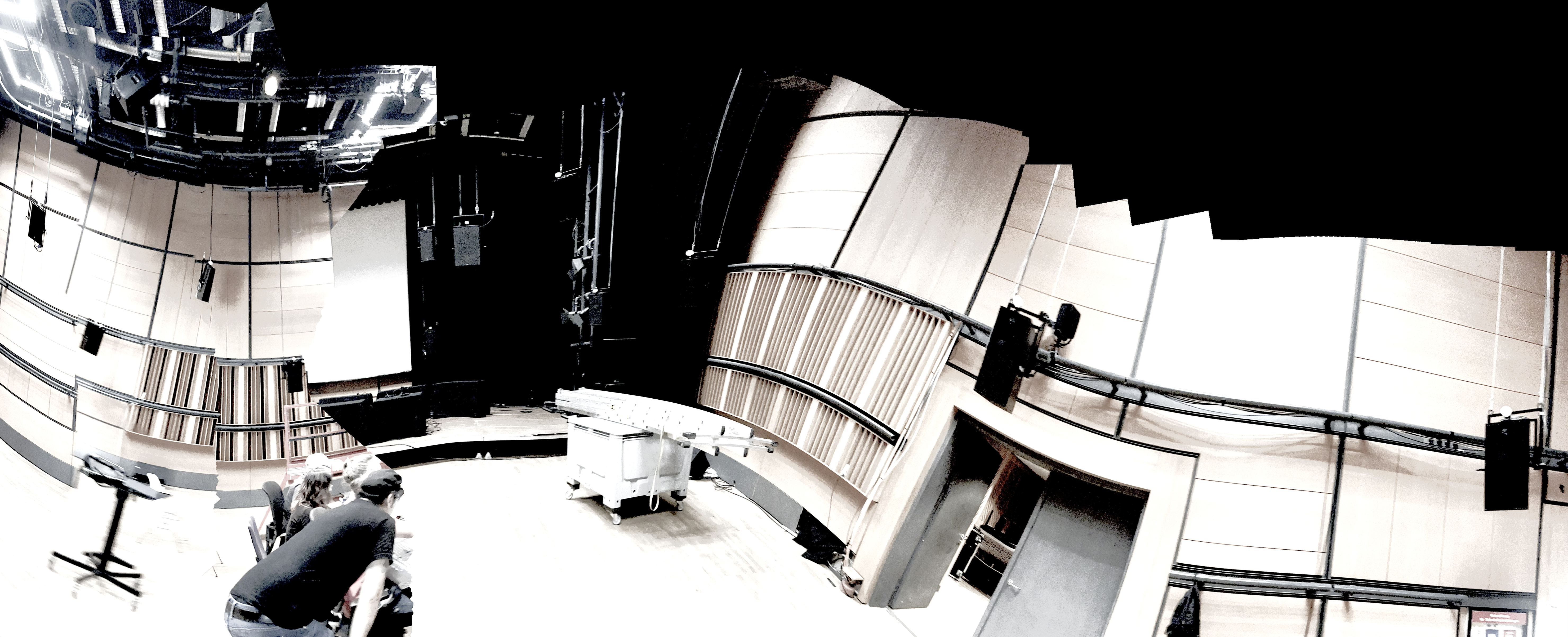 Then, different spaces at HfG were explored acoustically, producing sound with various means, like voice, objects, and loudspeakers to study and discuss the "room's reactions and behaviours".