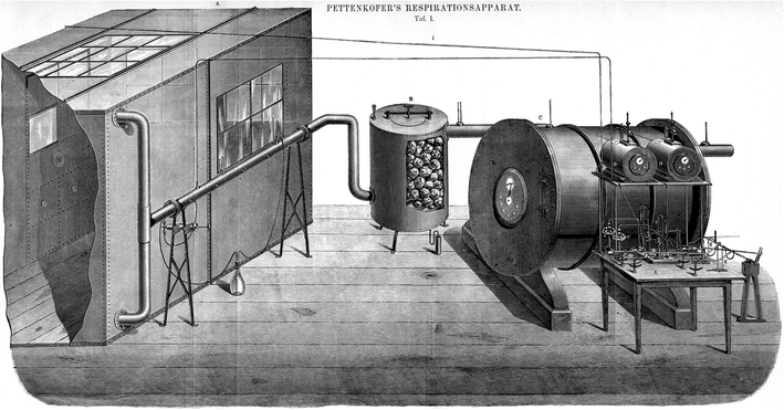 "Pettenkofers-Repirationsapparat", Classical experiments in whole-body metabolism,