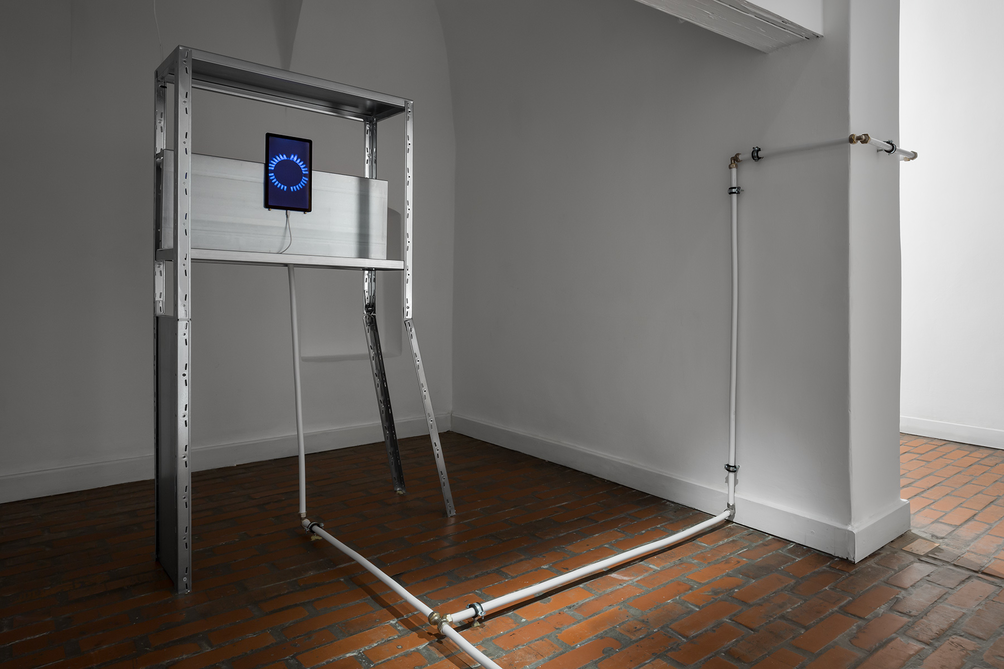 Dániel Máté’s exhibition takes the concept of calories as its point of departure. Until around the 1980s, in Hungary, calorie was not only used for the purpose known today, i.e. to measure the energy content of food, but heat, or more precisely, the amount of energy used for heating was also measured in calories. Despite having sparked much scientific controversy since its introduction in 1824, this unit of measurement is perfectly suitable for determining the focal points of Dániel Máté’s work: the home and the body.
