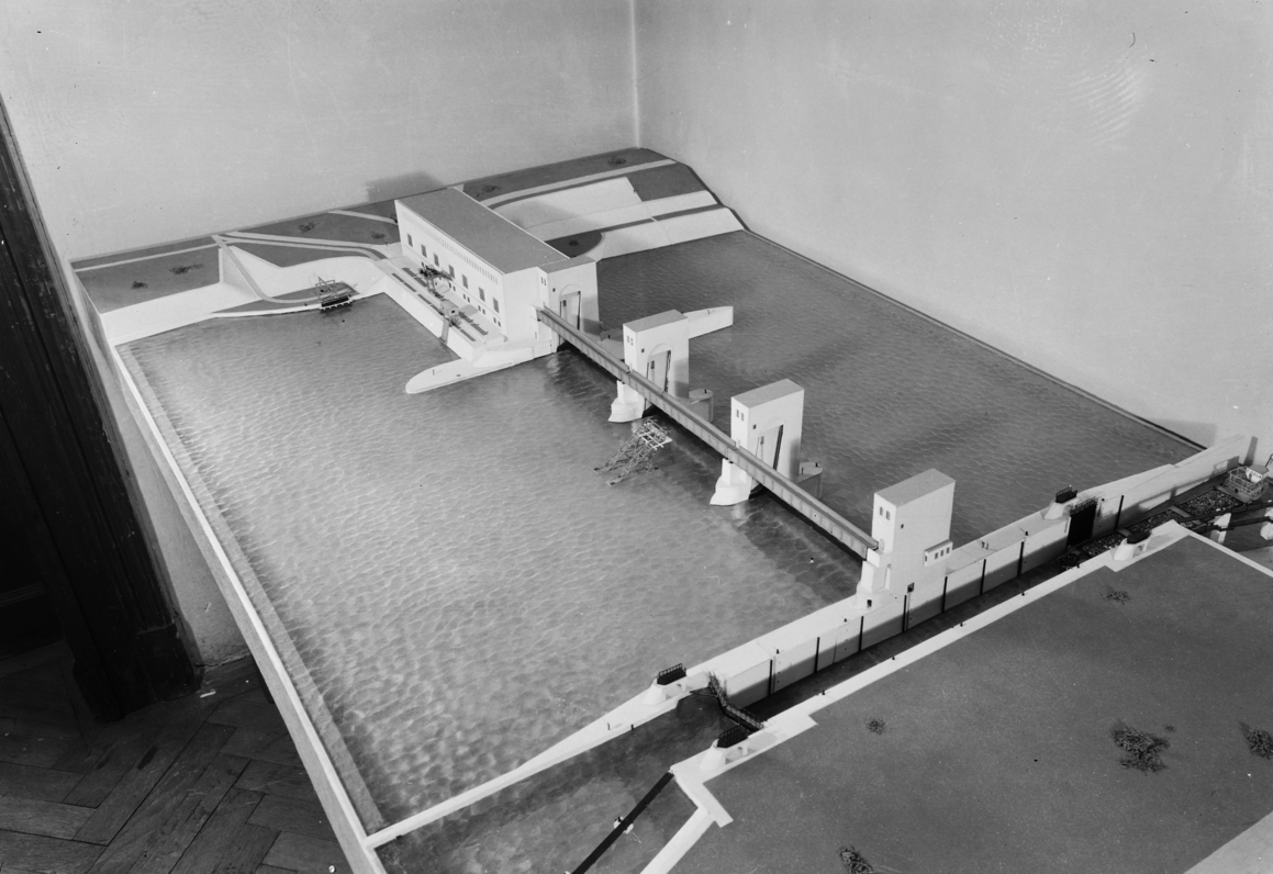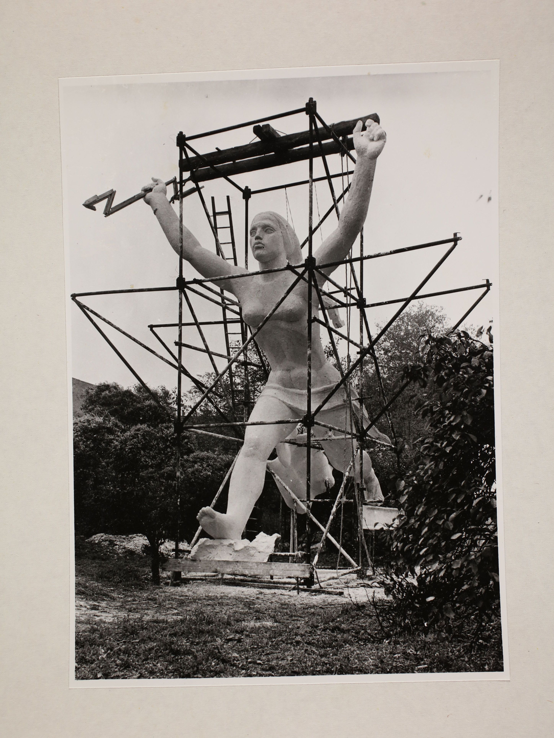 Photo of the Tiszalök hydro-electric powerplant with the sculpture Energy, 1959 by Fortepan / Handa Family