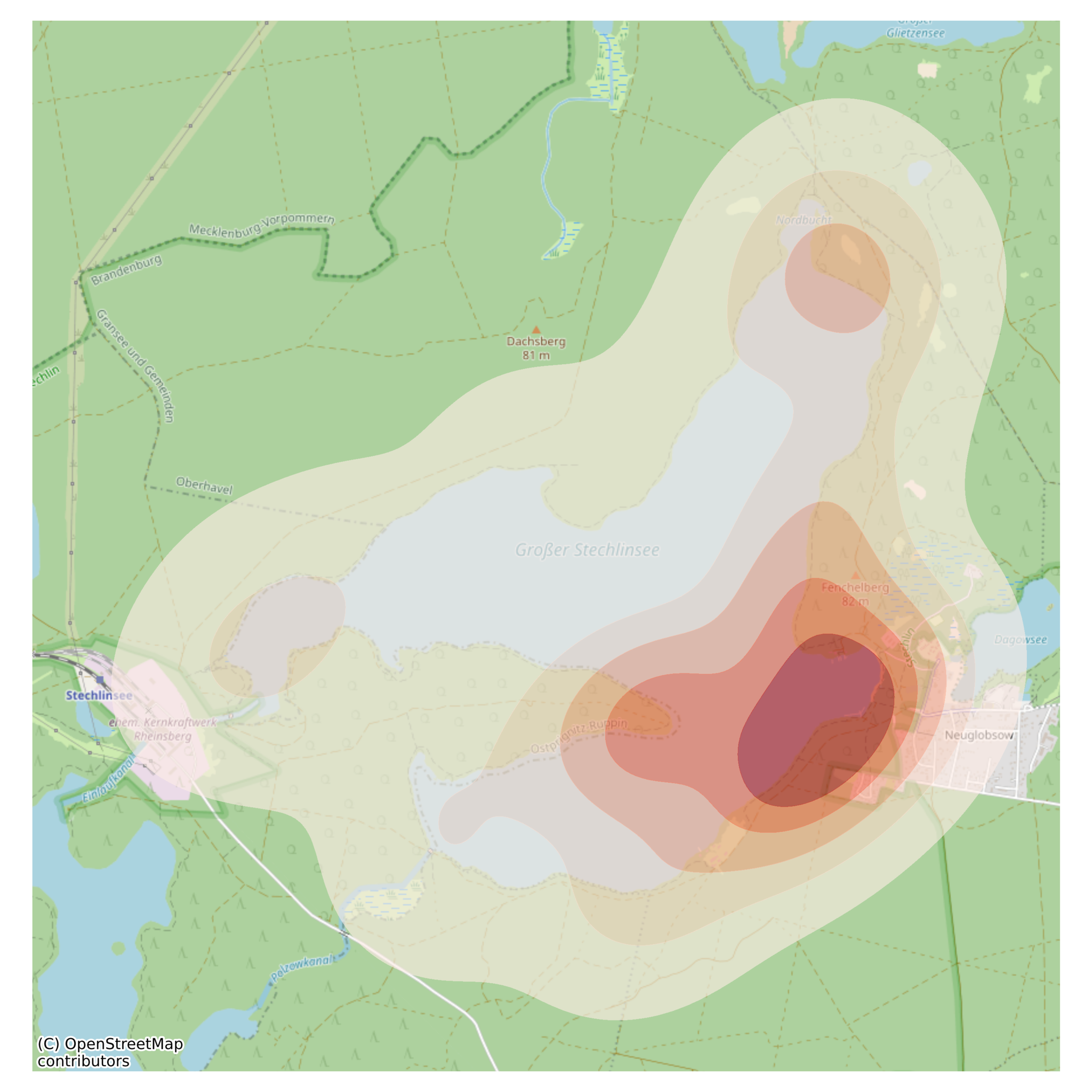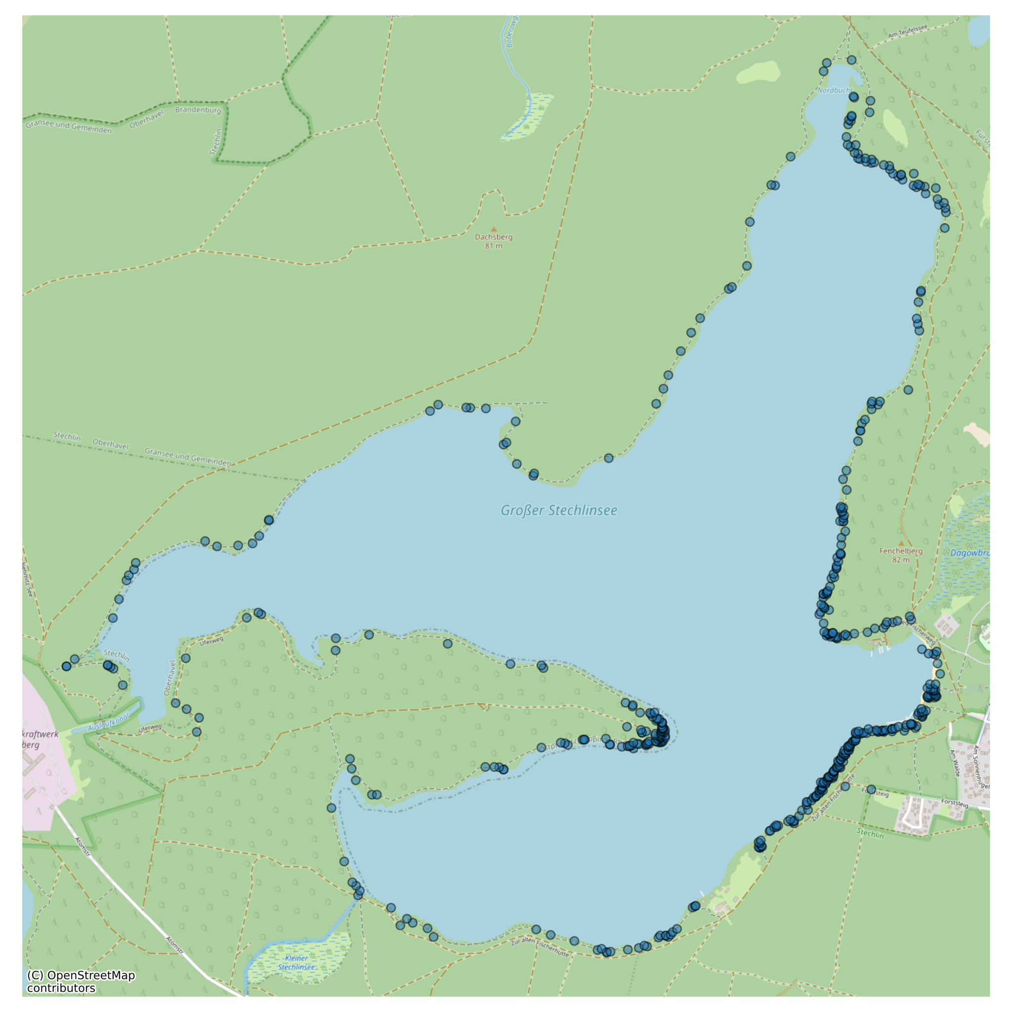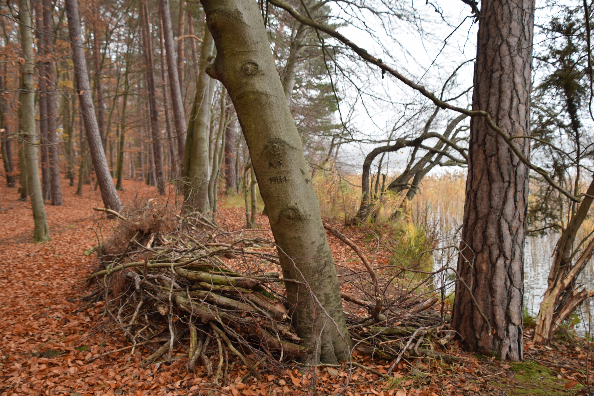 At a place, called "Stammstechlin," at the northern shore, lots of grafitti exist on old trees. They are commonly directed towards the lake, despite the shores thick reed cover.