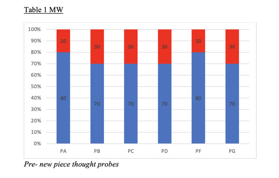 Regarding the thought probes during technique practice (Table 3MW and Table 4MW) we can observe that participants tended to ruminate or get distracted more easily than when practicing new pieces. According to the literature when carrying out motor tasks that have already been proceduralized and are implicit and automatic in the individual, these would not require so much focus or cognitive effort, and therefore musicians, in this case, would be more likely to drift away or to fall into rumination (Kane et al., 2007, Levinson et al., 2012; Stawarczyk et al., 2014).