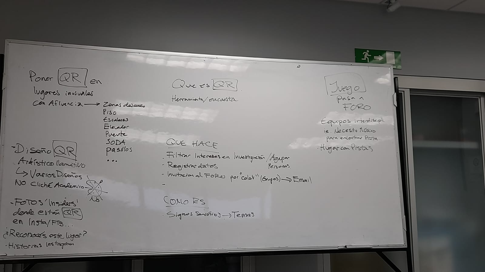 Explorando el sentido de la curiosidad en el juego, el equipo de nodos activos se planteó la tarea de diseñar una invitación a participar en el juego plasmado en la plataforma web involucra.me que requiriera más exploración que simplemente una invitación obvia y directa. Por ello, el acceso al juego anterior se divisó alrededor del uso de códigos QR escondidos como tesoros alrededor del campus de la UNA. Códigos que facilitaran el acceso al juego en nuestra herramienta digital. Los códigos QR que se dispusieron en una serie de materiales ubicados a lo largo y ancho de áreas en el campus de la Universidad cercanos a las 4 escuelas del CIDEA, pero no limitadas a estas en sí.