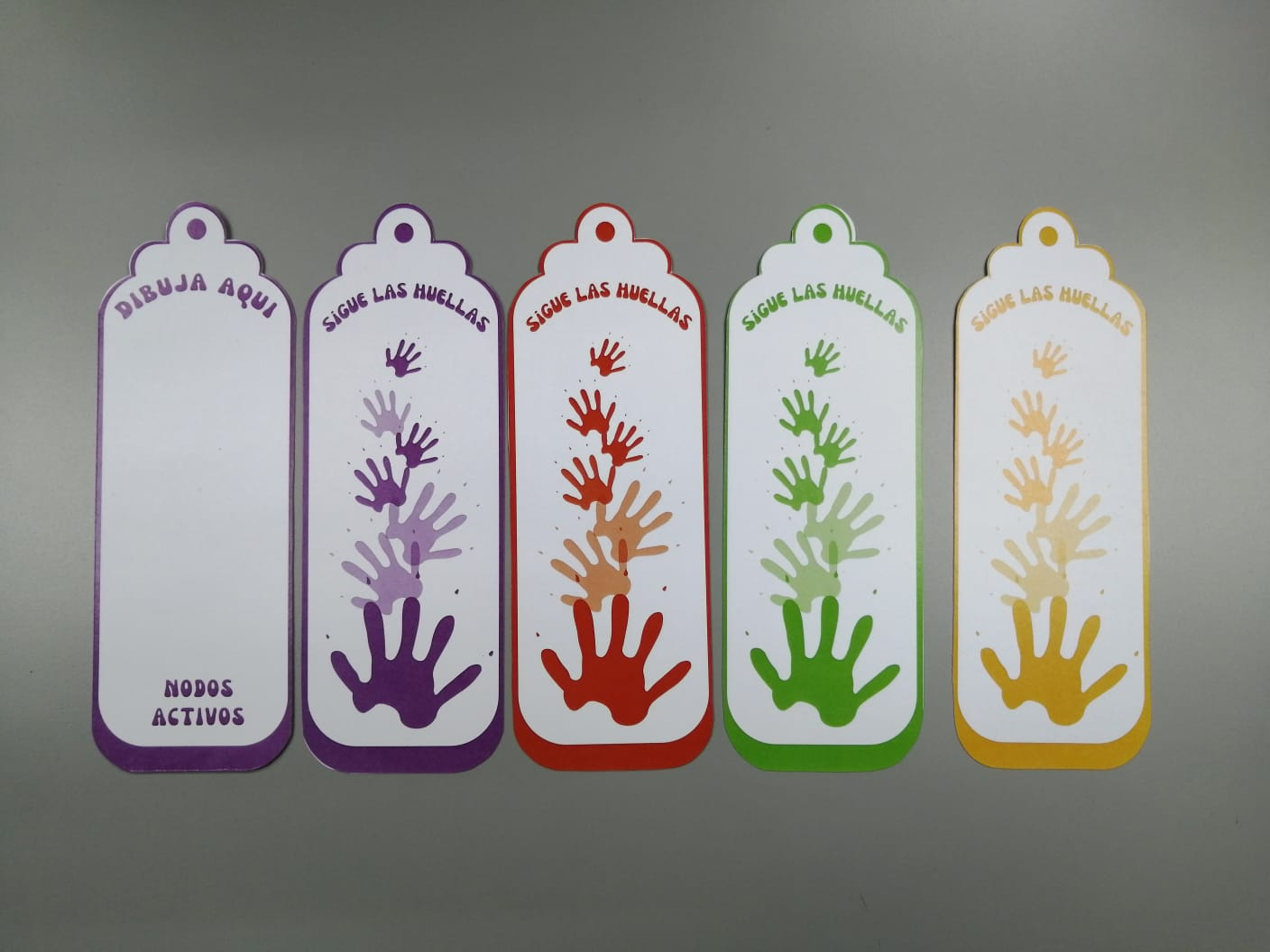 Se diseñaron huellas de mapache cuyo proposito era generar recorridos, el color tubo gran protagonismo, por lo que se le asigno un color a cada una de las escuelas del CIDEA, el verde para la Escuela de Musica, el amarillo para la Escuela de Danza, el naranja para la Escuela de Arte Escenico y el violeta para la Escuela de Arte y Comunicacion Visual.