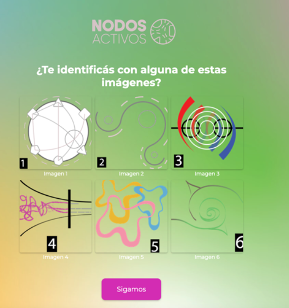 El juego consistía en una suerte de formulario interactivo colgado en la plataforma en línea Involve.me. Esta tenía 9 diapositivas que paulatinamente iban abordando diferentes temas a través de preguntas generadoras a su vez basadas en estímulos visuales y auditivos.