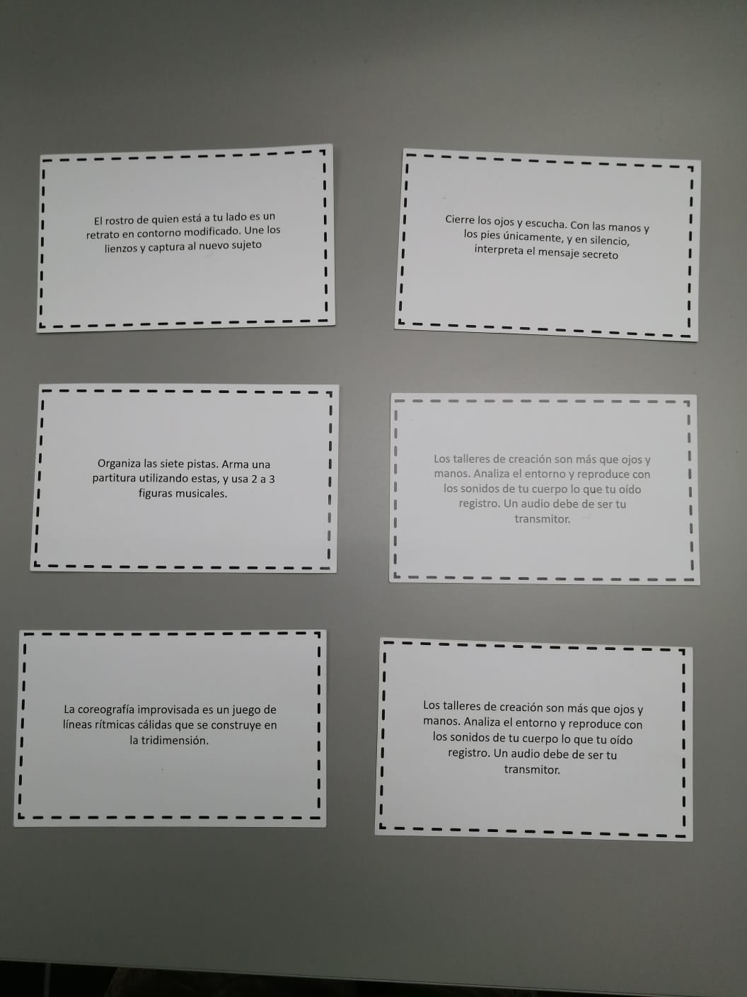 Luego de organizar las pistas en la partitura, el siguiente paso es la reinterpretación. Esta fase invita a los participantes a trasladar la partitura a una expresión corporal. Aquí, la creatividad se amplía, ya que la conexión entre la música y el movimiento corporal permite explorar nuevas dimensiones artísticas. Cada participante puede interpretar la partitura de manera única, utilizando el cuerpo como instrumento para expresar la esencia de las claves musicales representadas por los objetos.