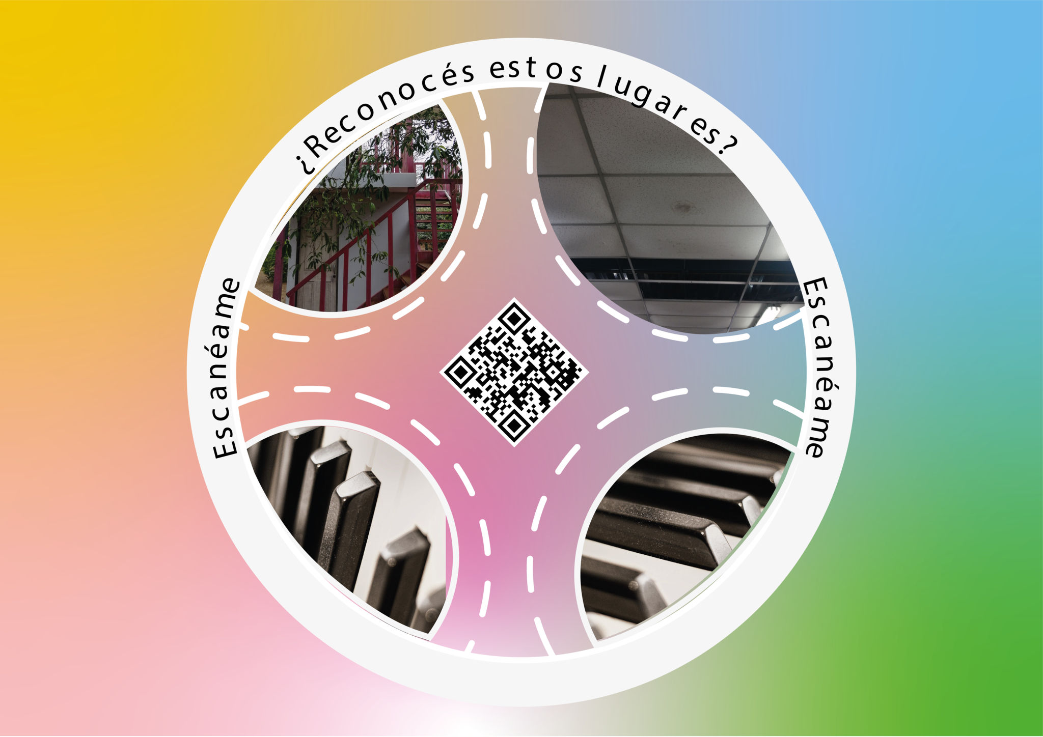 Este juego consistía en que las personas participantes se trasladasen al corazón mismo de la escuela de música del CIDEA, en medio de un patio solar situado en el centro de una serie de aulas de práctica y un auditorio musical donde las personas estudiantes diariamente practican tanto solfeo, como interpretación instrumental y canto.