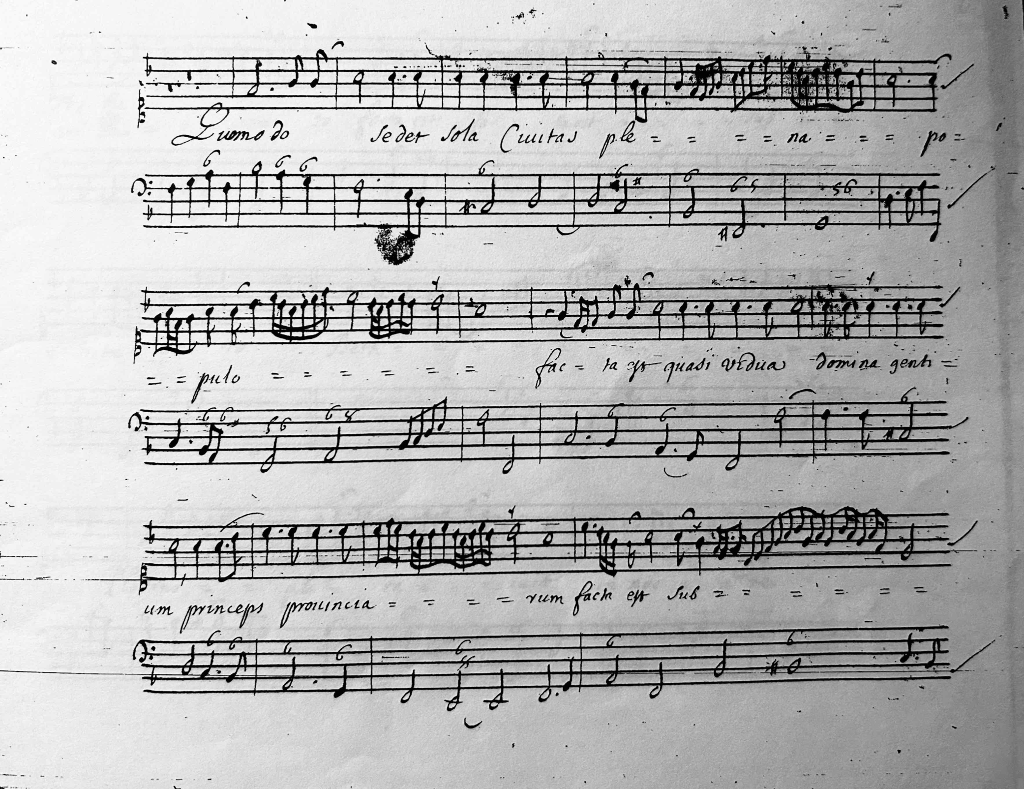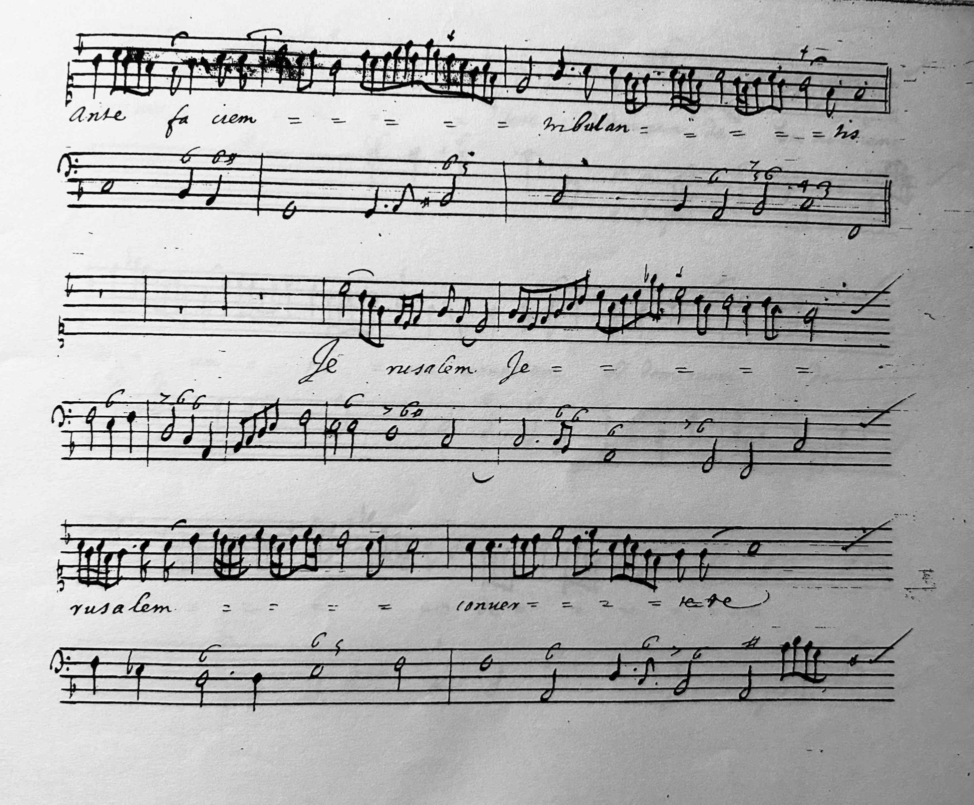 One one level a very practical task, beginning with the handwritten score of Michel Lambert’s Leçons de Ténèbres from 1660s and the lyrics from the Book of Lamentations of the Hebrew Bible.