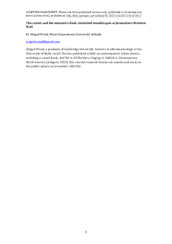 The cantor and the muezzin’s duet: contested soundscapes at Jerusalem’s Western Wall