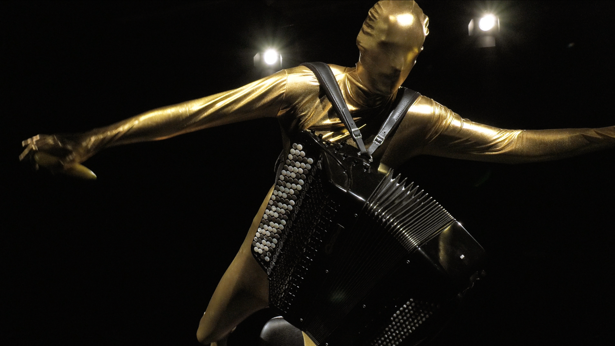 Because Borealis needs the covid-proof screen version of the piece, we need to make a video recording of me playing everything in the golden zentai already in less than 2 weeks. I have no idea how I’m supposed to learn it all by heart before that. (On Monday Venables’ piece has to be recorded. Argh!) Nothing is on click, and although Marcela told me that the live accordion sounds shouldn’t always be perfectly in synch with the video, I think at least some of the sharp and sudden sounds must be. I understand that she’s aiming for an aesthetic of imperfection, of the uncontrolled, and I totally get that it’ll lose it’s edge if it gets too polished – but surely a total mess won’t be interesting either. The accordion sound is the only link between me and the video screen, so I think this link must be clearly and convincingly established. In what other way than though sharp synchronicity?