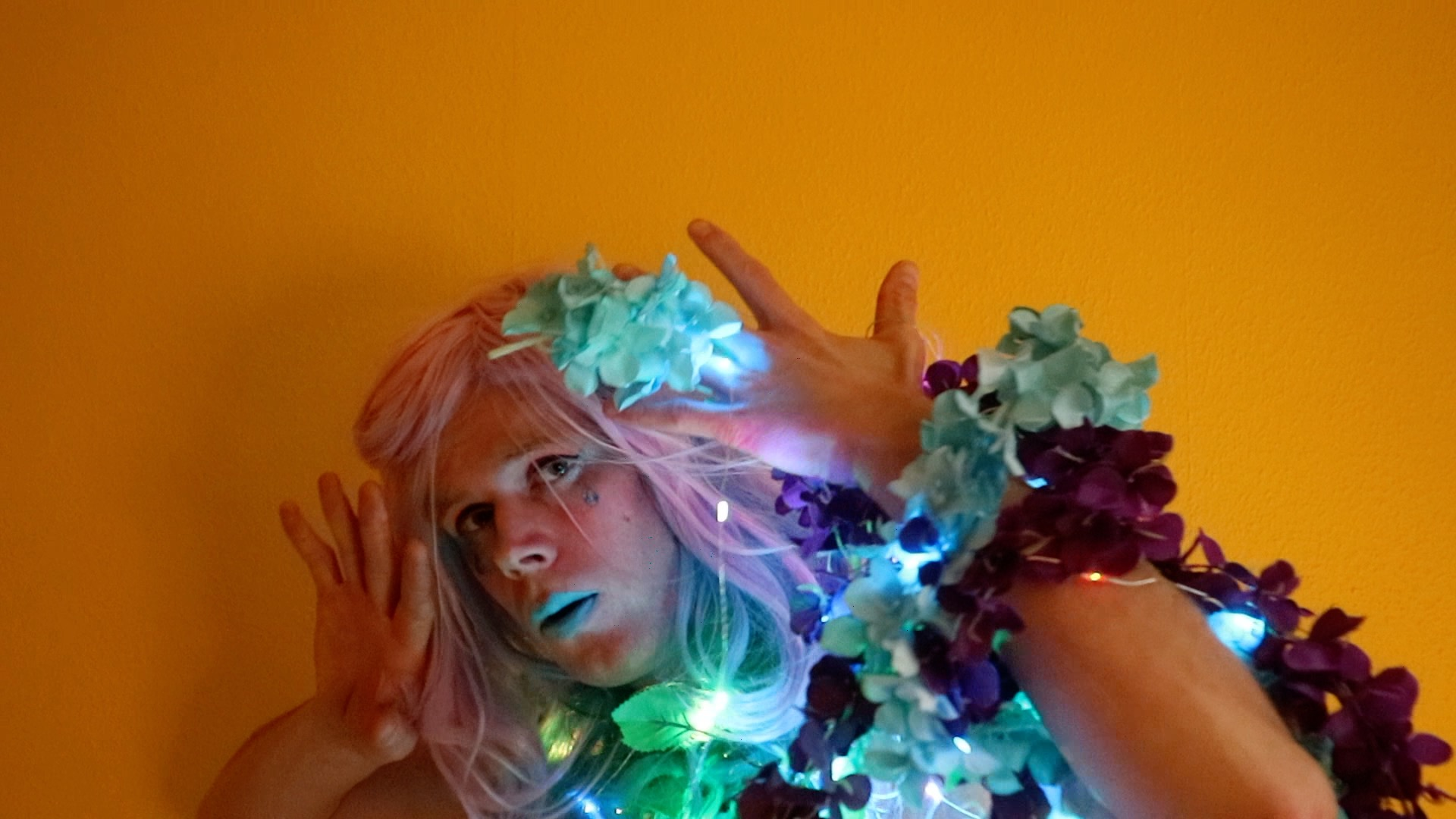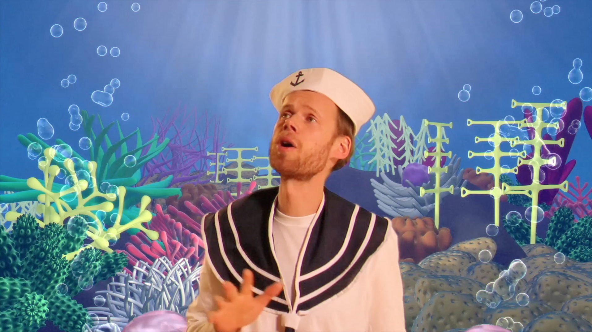 Am I really just a dog? A puppet? Controlled by my Mistress on stage? Forced to imitate, mimic, live through and engage with the manipulated debris from all the personal things I shared during the development of the piece – some of the most profound and private parts of my existence: my unfiltered voice and my sexuality? A puppet entertaining the audience, who only hears a puzzling, instrumental, uncertain shadow of the Mermaid’s vulnerable voice explorations, who sees a funny Gay Sailor in cartoon-like underwater animations singing an amusingly queerified Danish schlager, without knowing that the lyrics come from a radically honest interview about my intimate relationships? IS THIS PIECE AN EXPLOITATION RATHER THAN AN EXPLORATION?!