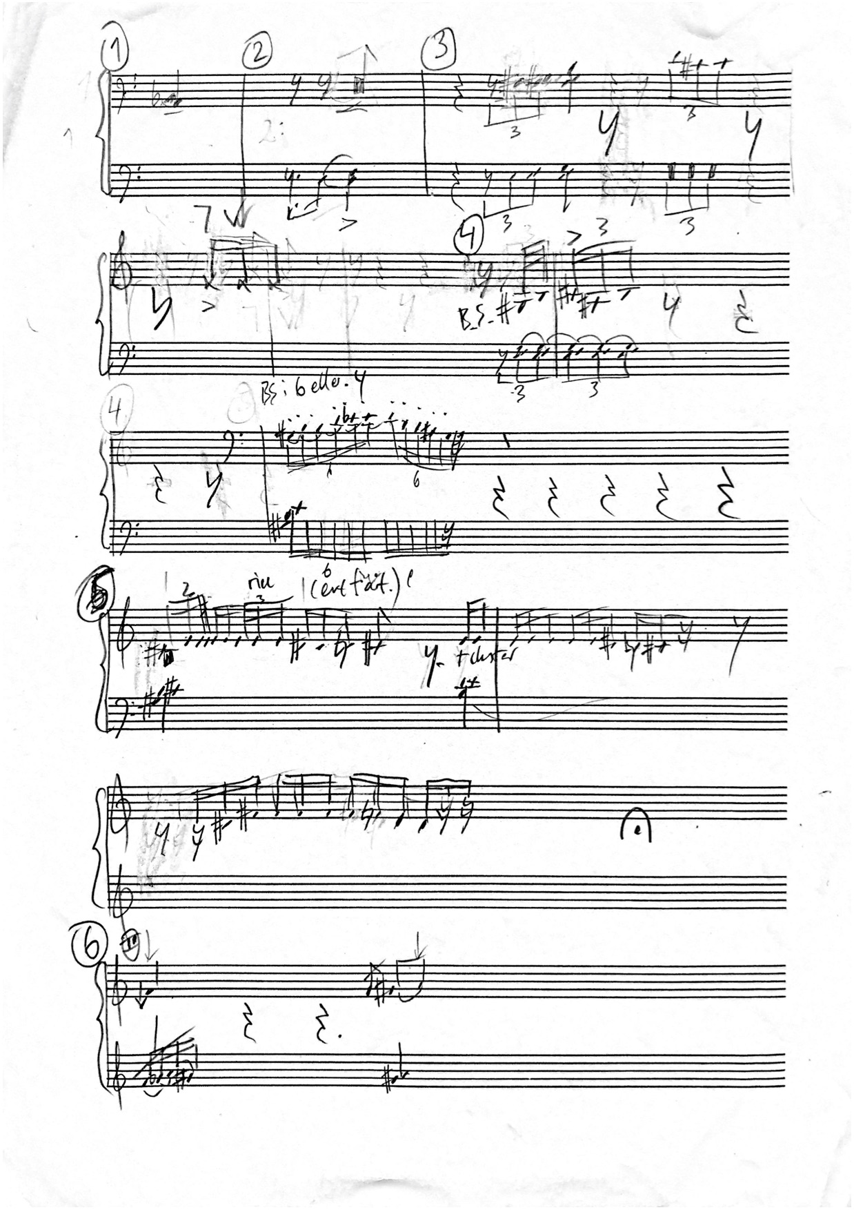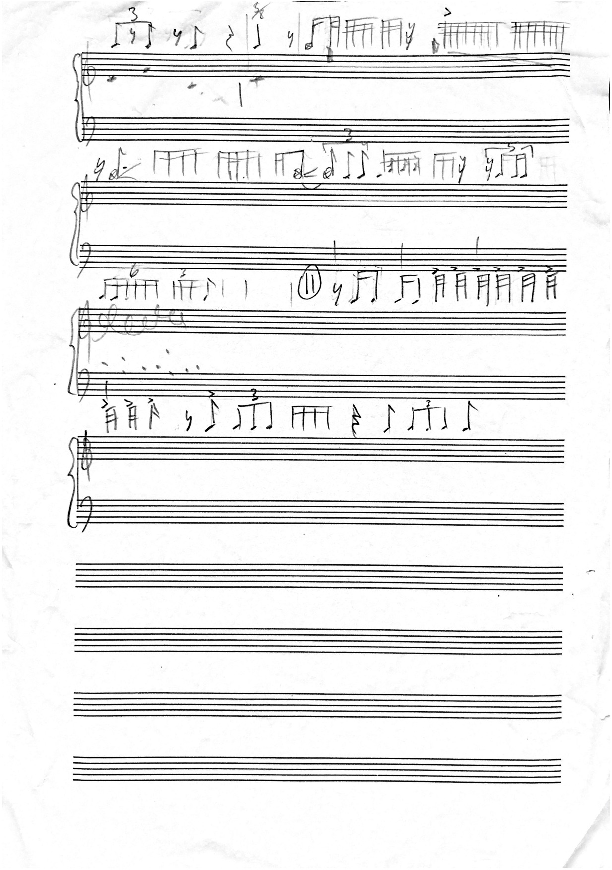 Initially I thought I could create a sense of pulse from the first laughs and then perhaps count my way through a longer segment, but it’s too fragile. I’ve now divided the score in sections and marked them respectively in Ableton Live, so I can easily loop short motifs and memorise the timing of them. Some of the laughs almost fits a rhythmical grid, though, so to have these precisely transcribed eases the memorisation.