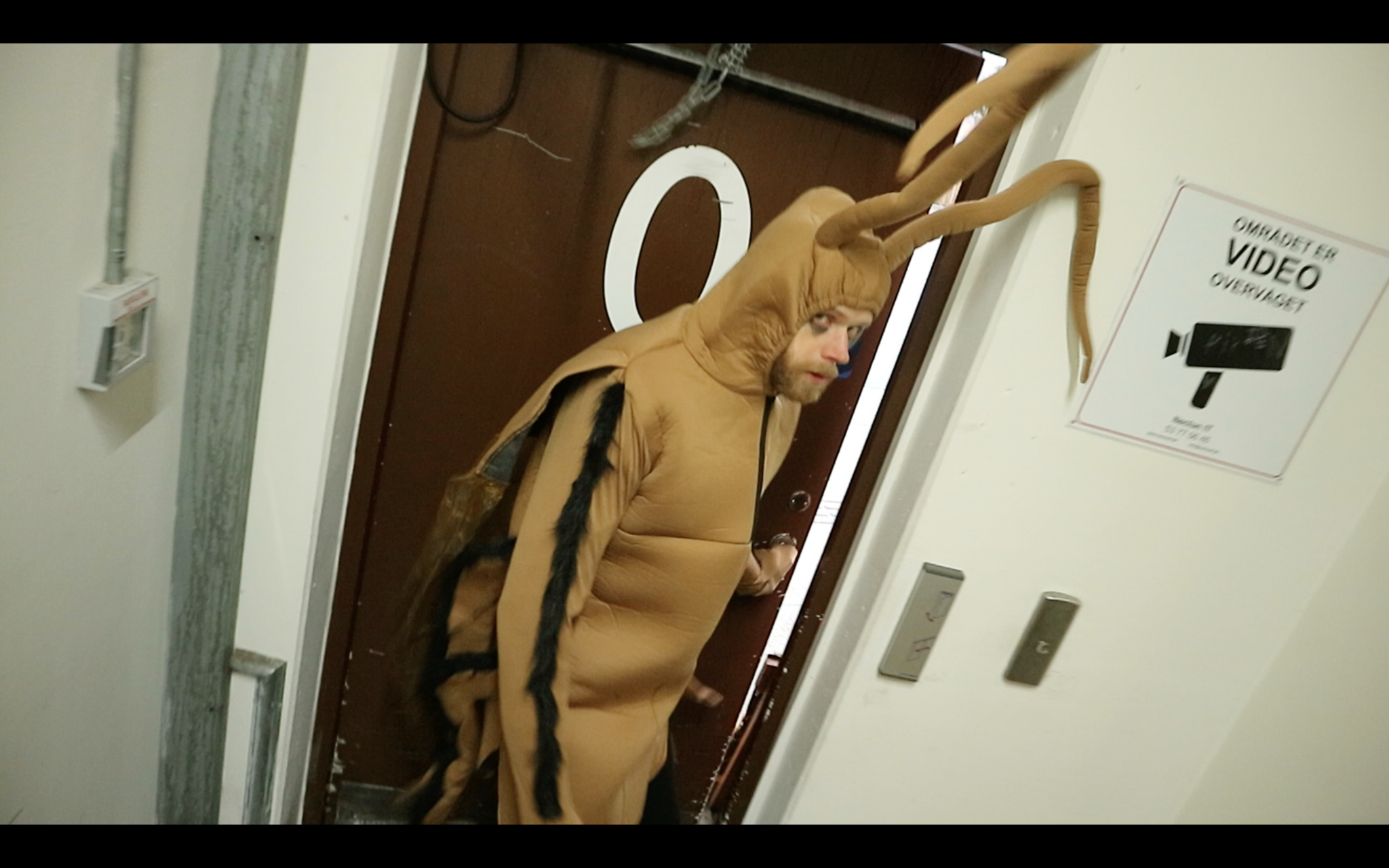 First of all, I now know how to suppress the lurking claustrophobia in the zentai. It’s never been problematic when the piece is running, because I am so focused on listening and playing with the video, but from the moment I zip up the suit until the piece begins, I often need to calm myself deliberately. Pulling the garment away from the nose is a big help, but of course I can’t do this once the audience starts entering the hall. Instead I focus on slow and deep breaths – a bit of resistance when breathing out, like the ‘whispered ah’ of Alexander Technique. I basically do the same thing towards the end of the piece when the Cockroach is dead and I need to wait in stillness through the video’s outro. (At this point it’s even worse because I actually need to catch my breath after the frantic Cockroach moves.) Funny to be sitting on stage in front of an audience and do typical backstage calming exercises. Of course they don’t know what I’m doing, and some people actually came up to me and said they were really worried if I could breath through the suit ;-)
