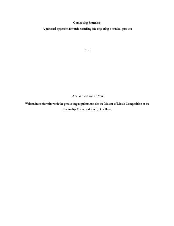 This paper is about finding relationships within my own composition process, how these relate to my relationships with the world around me, and how these impact the music that I make. In this paper I will touch on how my work has been influenced by psychogeography, making music about locations, and my experiences working in community arts. I will discuss my influences from the work Situationists International and later psychogeographic explorations, the community art world in Toronto, discussing how they have influenced my composition process and how the relationships between people, places, and sound play into the music that I compose, and the musical worldviews that helped me shape these influences into my own work. I will further explore, specifically, a part of my process which involves the setting up of situations in which music occurs as part of my compositional practice, discussing how the situation in which music is being made impacts that music, and how the music can impact the situation, finding reciprocity within these musical relationships.