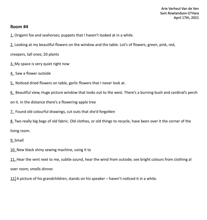 We developed the zoom room mapping exercise in mid 2021. By this point we had become so used to meeting and making music in this space, that a choir member joining with a different wall in the background was an event that was cause for conversation. The mapping activity was simple, each member of the group call would describe something they were noticing in their space - it could be a sound, a sight, or otherwise. While each choir member was describing their space, an artist in the room was taking each element and painting them together into 'maps' of our imagined, collective, virtual space.