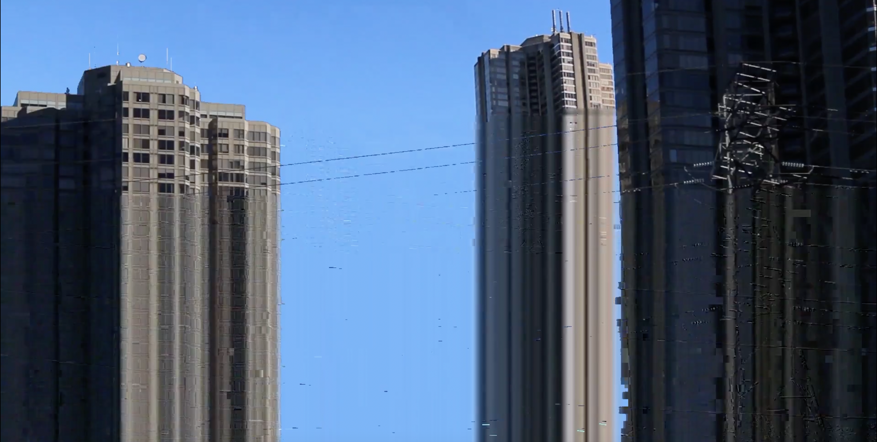 These places of transition and translation were reflected through a number of techniques I used in this piece for processing both video and audio. At the same time as exploring the strangeness of thecoastline of Toronto, I became interested in digital formats and data storage - thislead me to experiment with a number of data-bending techniques. In the first movement, the sound of the contrabass clarinet ‘opens’ a shade, revealing with each pulse. The second movement is a repetition of this slow pulse, this time reinterpreted by Ableton Live’s audio to MIDI algorithm. By setting the conversion setting to ‘harmony’, the algorithm reinterprets the harmonically rich recording of the contrabass into a series of piano chords. I ran this algorithm recursively, reinterpreting the audio produced from the MIDI information back into the audio to MIDI algorithm. The final piano part is a superposition of all of these iterations of change and translation.