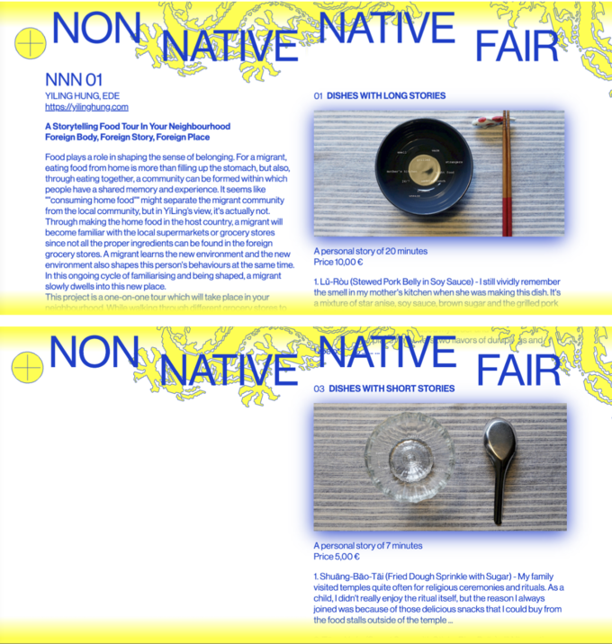 A STORYTELLING FOOD TOUR IN YOUR NEIGHBOURHOOD - FOREIGN BODY, FOREIGN STORY, FOREIGN PLACE is part of the Non Native Native Online Art Fair. It is a city walk that people can book different (food) stories online and I will compose them into one walking tour. I