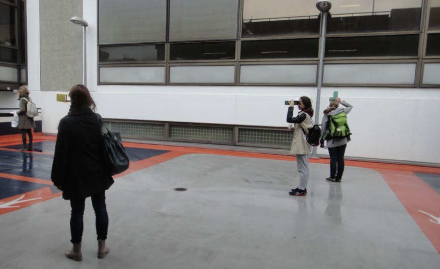 In Urban Gallery, the participants were given a map and a "framing device". It was a walking project - a walk inside a parking lot, we walked from the ground floor towards the most top floor.