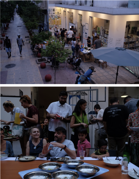 During the residency, I cooked in our little kitchen at the Greek apartment and also cooked along the street in front of the Foundation. The "place" where the cooking will take place, is an important part in composing the cooking experience.