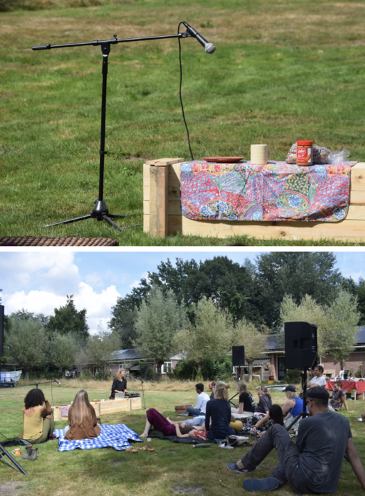 One of the storyteller, she is a Taiwanese and moved to the Netherlands because of her marriage. In her performance, she used a lot of objects for her storytelling space, it represented her perception of feeling home - that she is surrounded by the objects brought from Taiwan. The objects she shared during the performance were books (related to some Chinese massage medical study books) and food-related products.