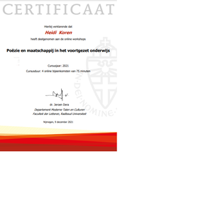 Ik volgde (door omstandigheden slechts) de eerste twee delen van de workshopreeks Poëzie en Maatschappij in het vo van de Radboud Universiteit Nijmegen, een online workshop reeks.