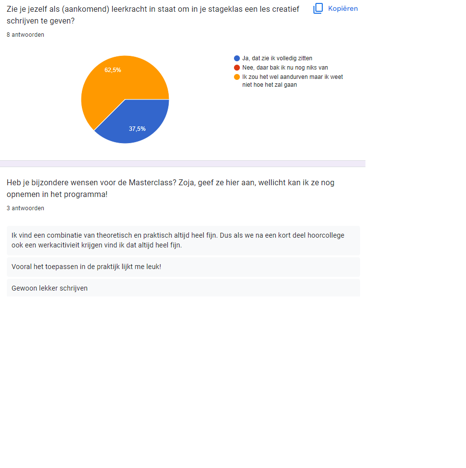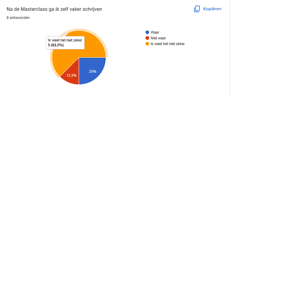 Achteraf gezien had ik het zelf wel interessant gevonden als ik ze een schrijfproces had laten omschrijven voor en na de Masterclass.