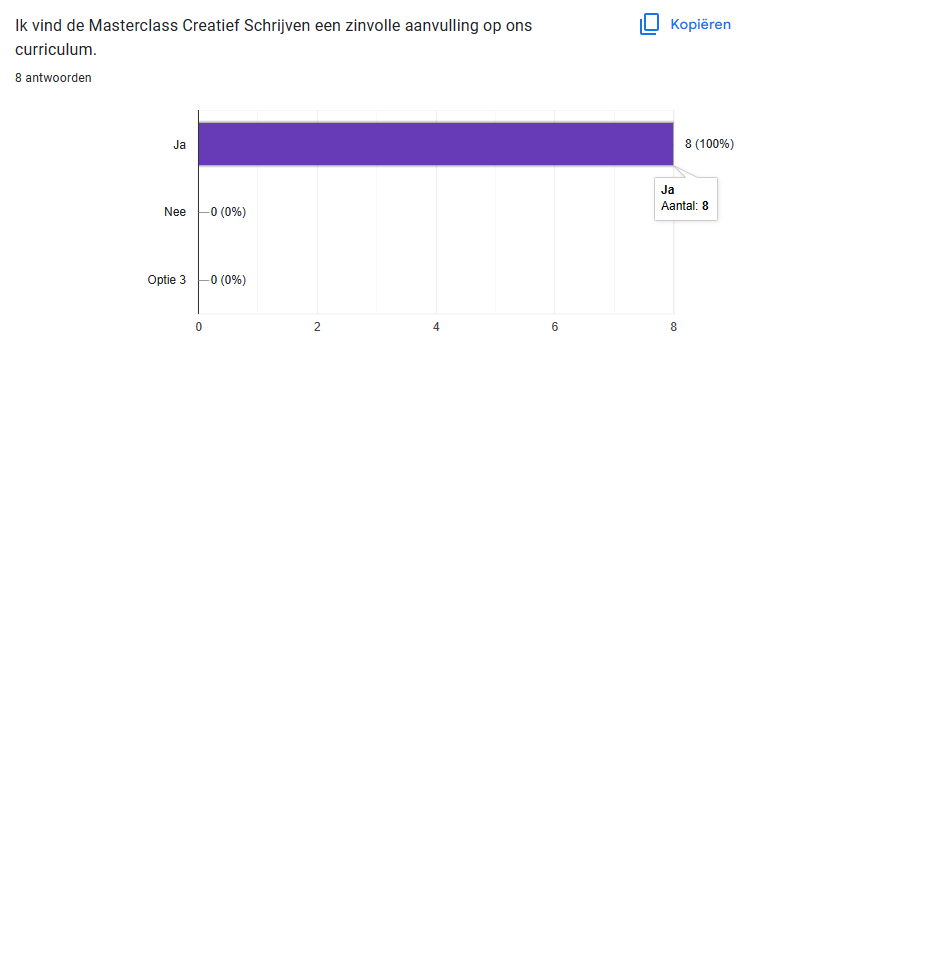 - 100% na de Masterclass het vertrouwen heeft leerlingen beter tot schrijven te kunnen motiveren