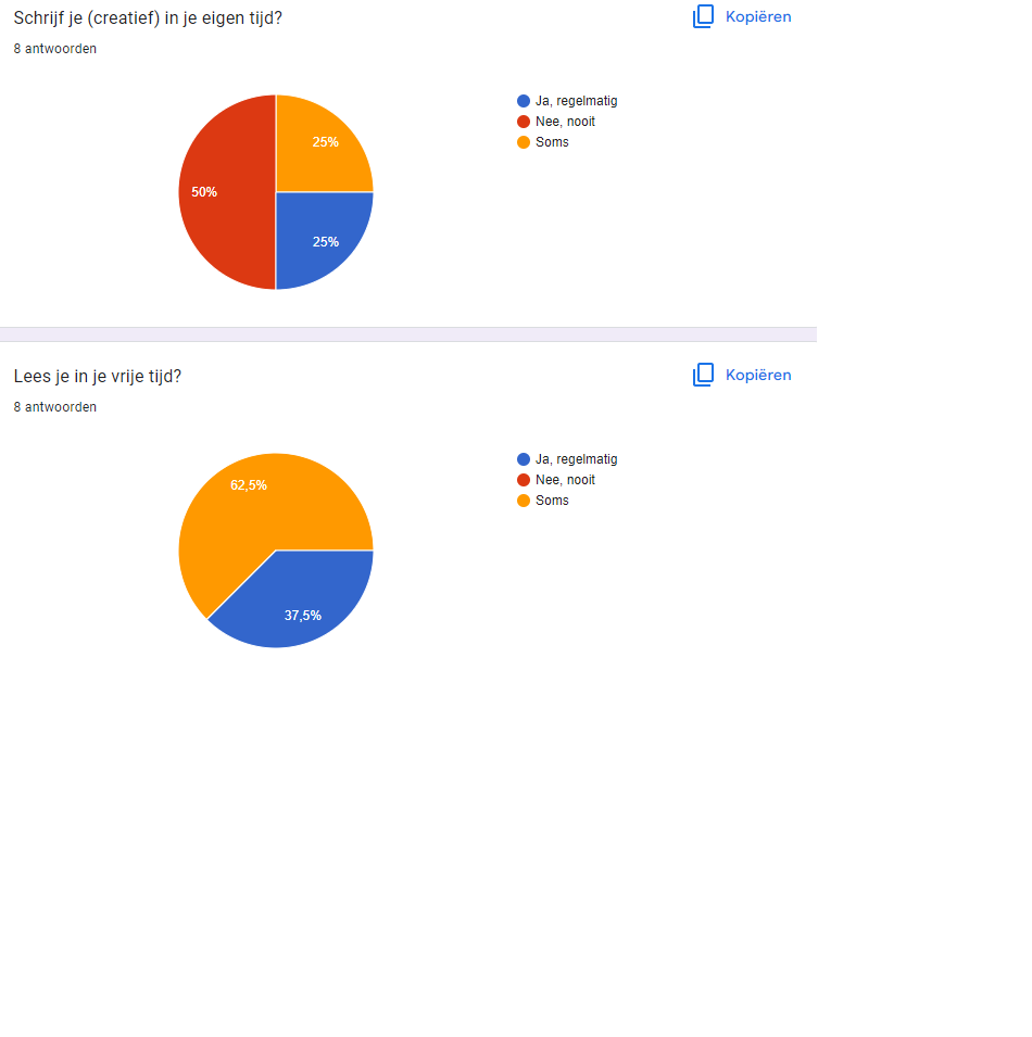 50% nooit (creatief) in eigen tijd schrijft en dat