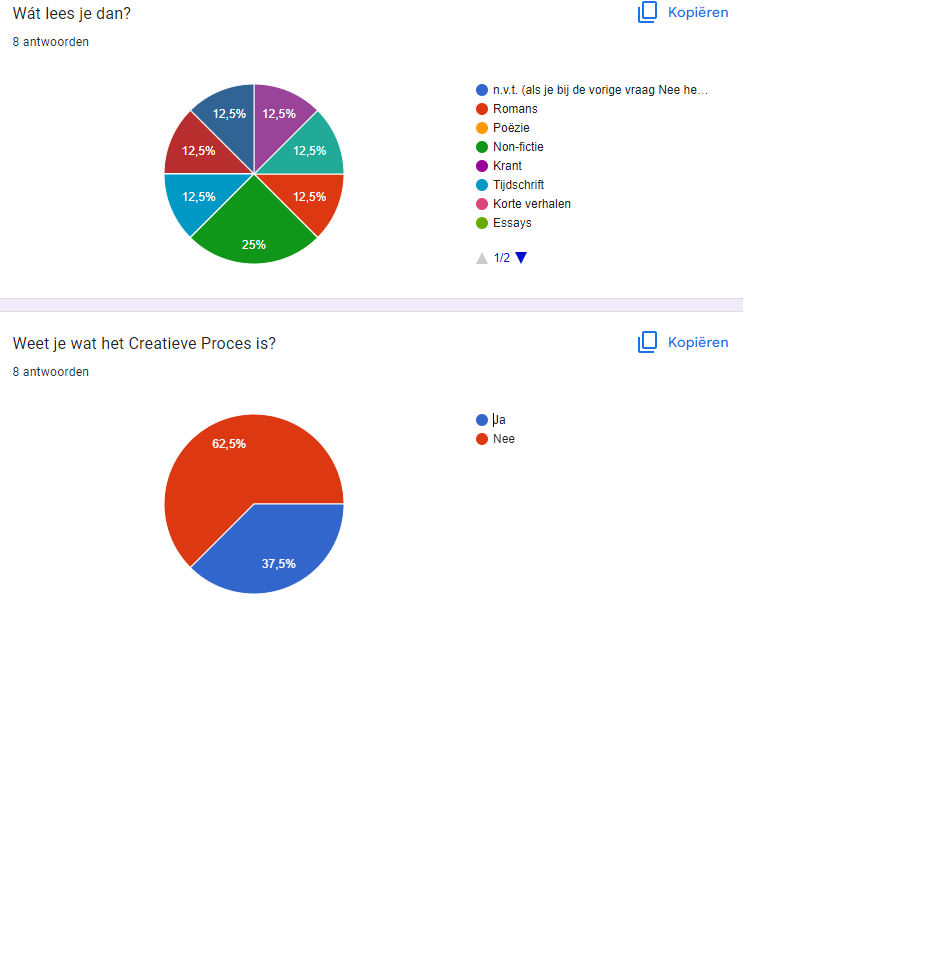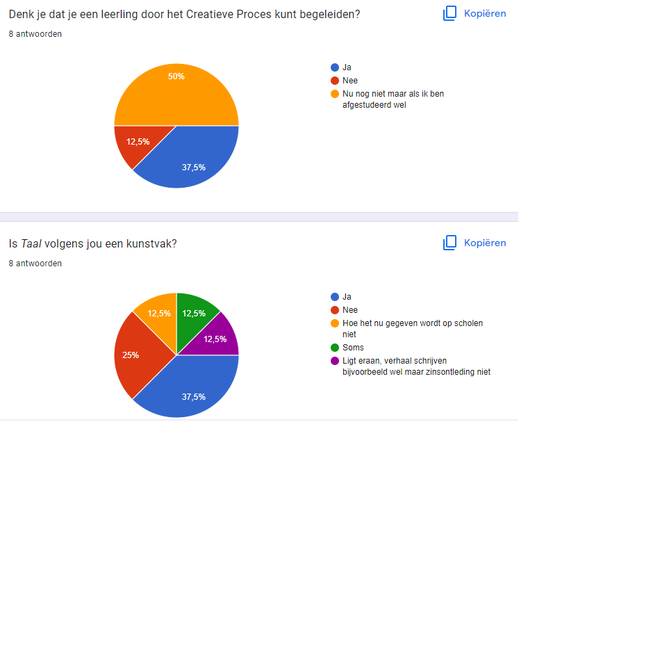 62,5% (ondanks het feit dat dit behandeld zou moeten zijn bij de kunstvakken) niet weet wat het Creatieve Proces is.