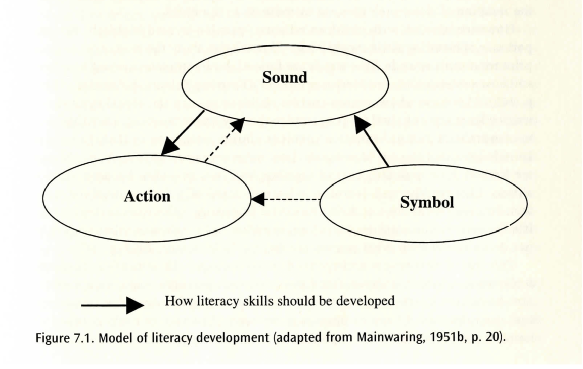 Music educator James Mainwaring researched the process of acquisition of ear playing skills; his studies led him to the conclusion that in teaching practice too much attention is drawn to technical skills and mechanised memorisation of music from a printed score. He believed that “learning an instrument should proceed from sound to symbol, not from symbol to sound, based on his belief that the development of music literacy should involve processes similar to learning to speak and then read a language."25.
